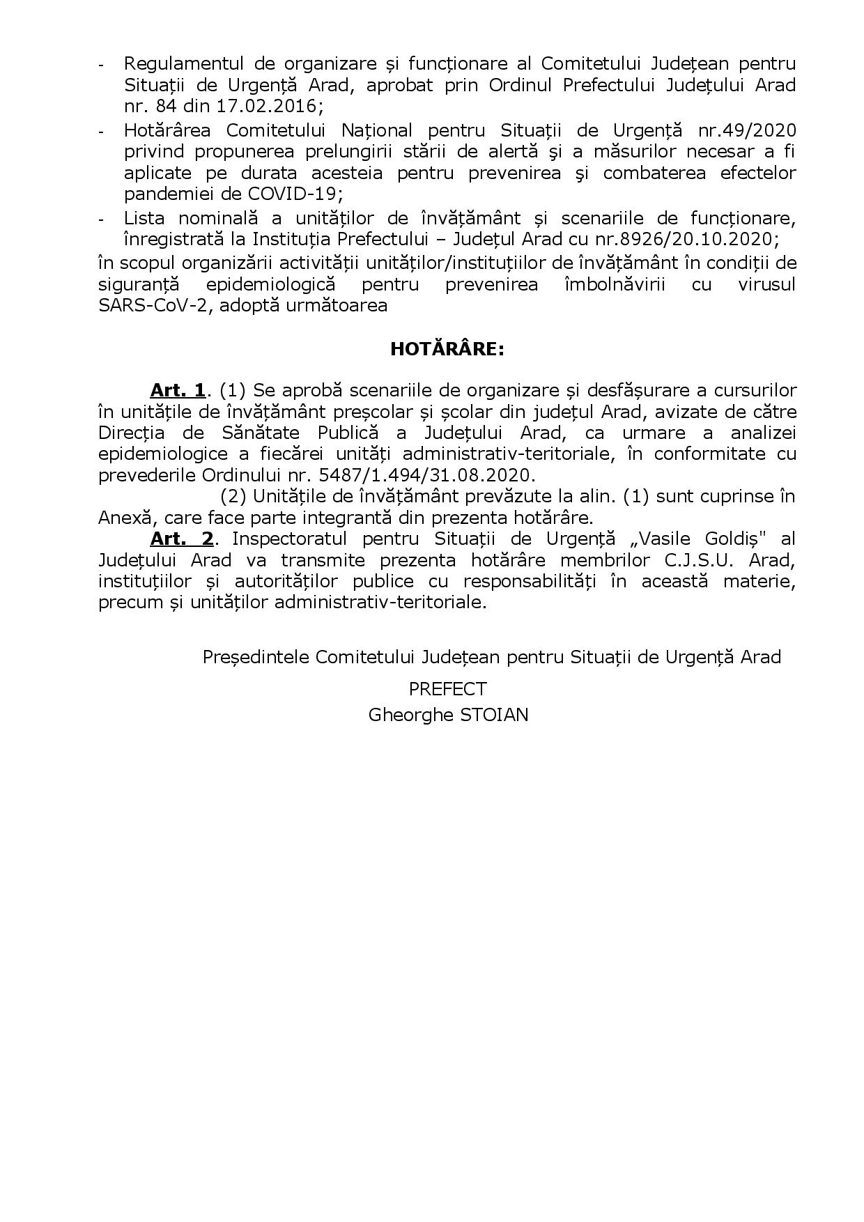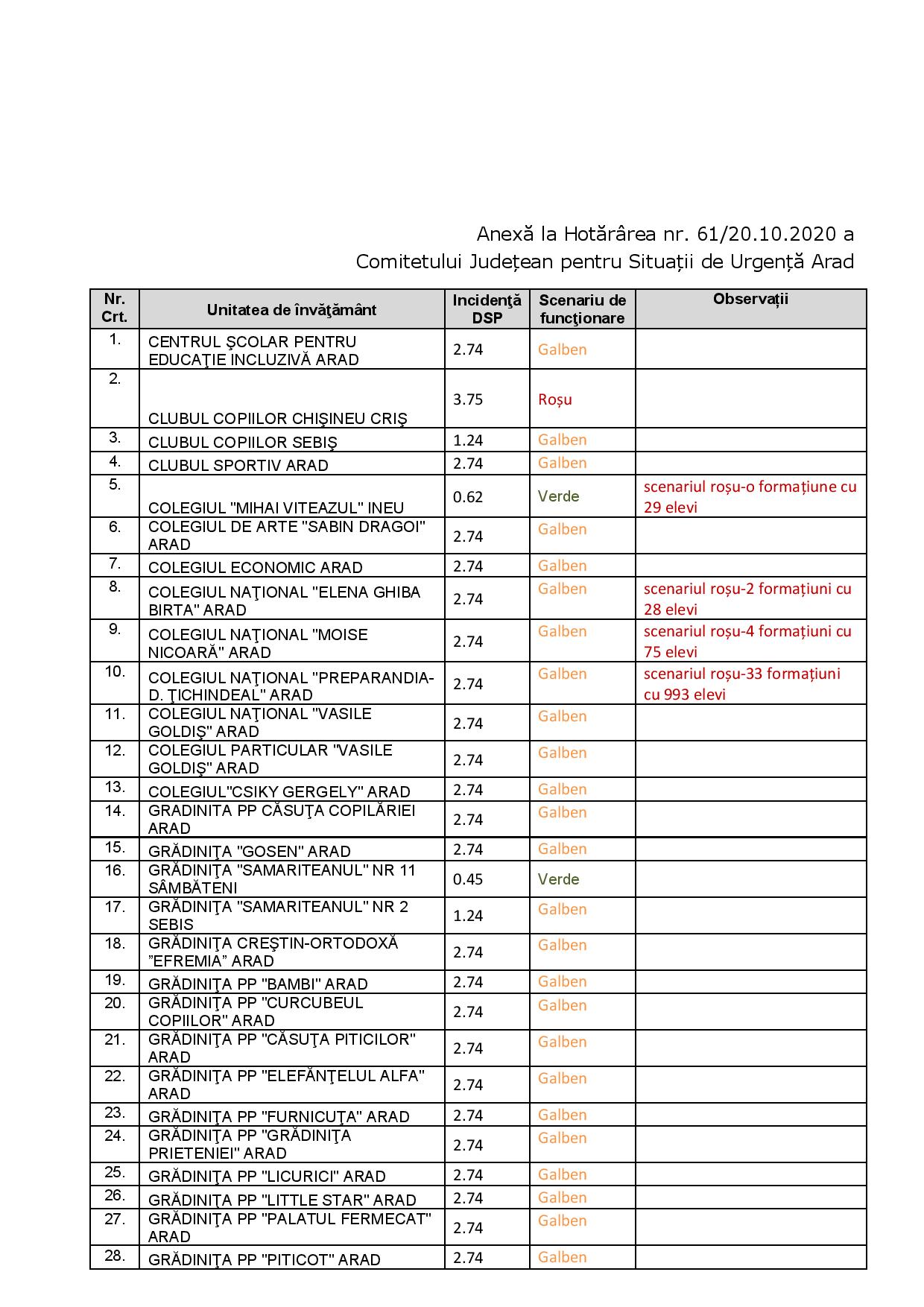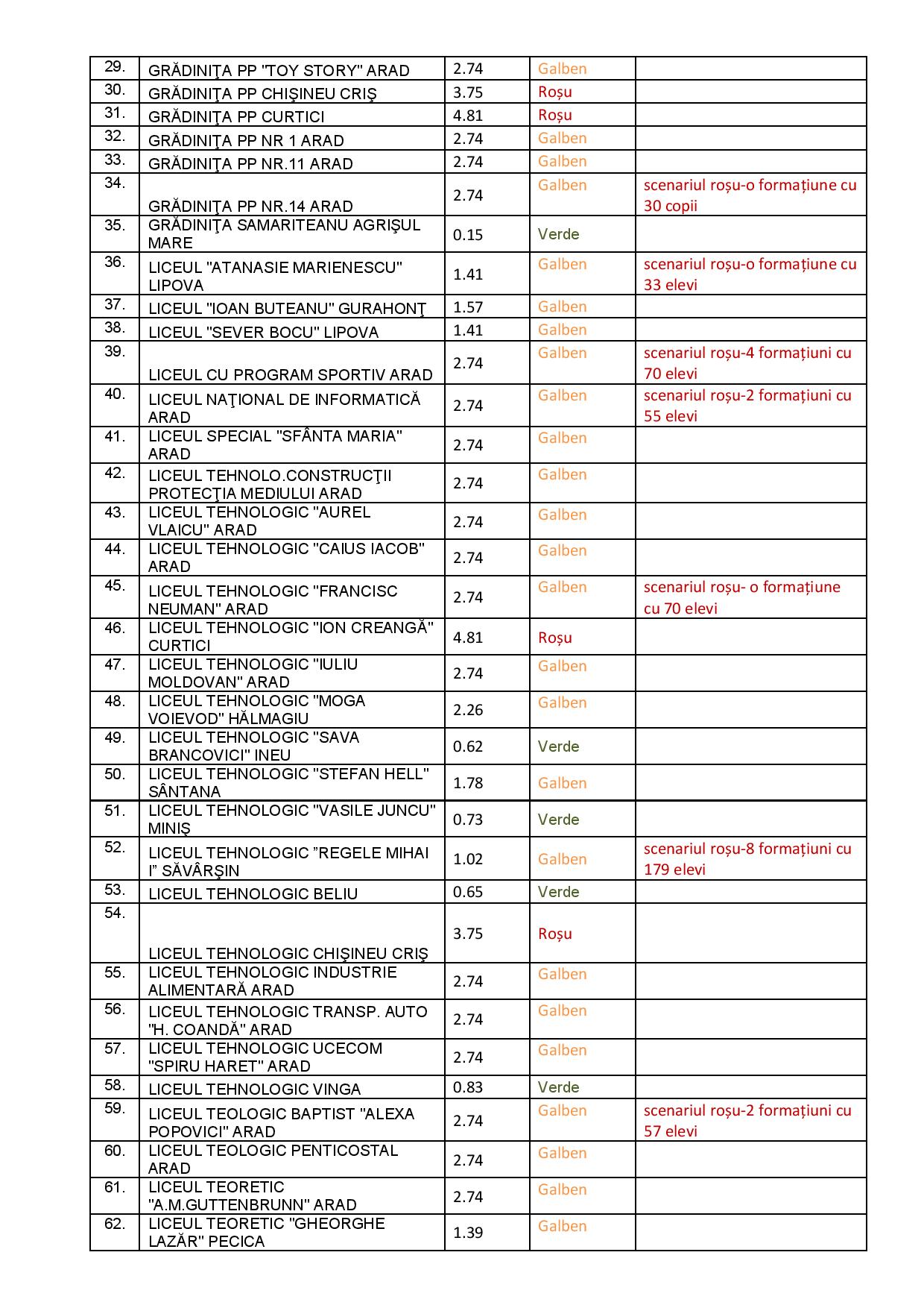 IȘJ-ul menționează și că din cauza apariției unor cazuri de Covid-19 în rândul elevilor sau al cadrelor didactice, 67 de formațiuni de studiu – grupe sau clase – vor funcționa conform scenariului roșu. Cele 67 de grupe sau clase cuprind laolaltă 1.732 de elevi. IȘJ-ul, însă, nu a menționat și școlile în care sunt cele 67 de grupe sau clase.