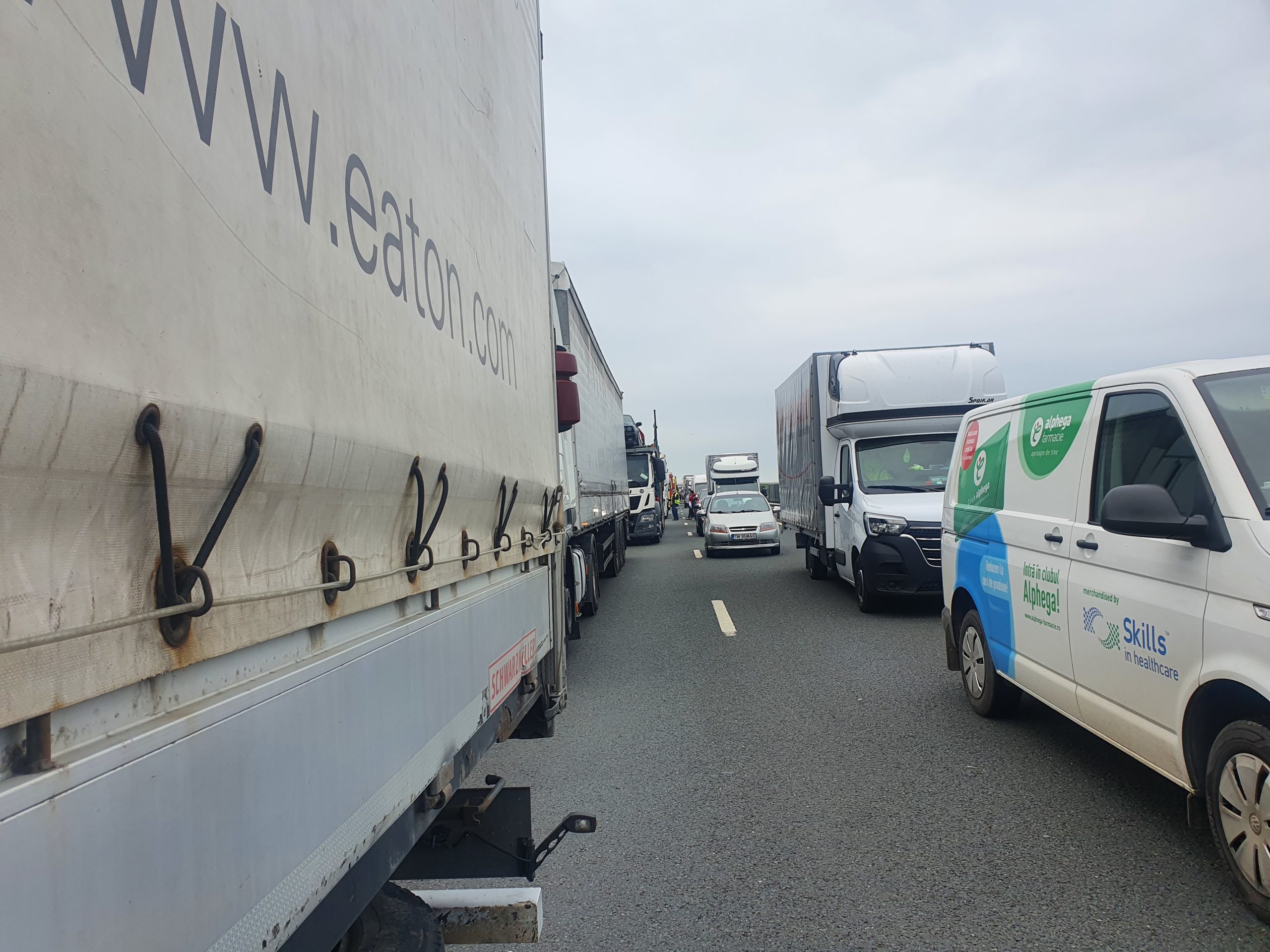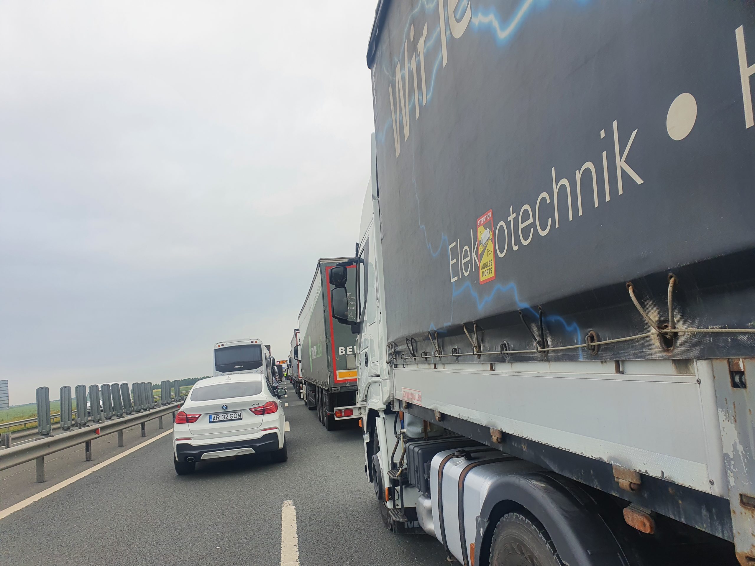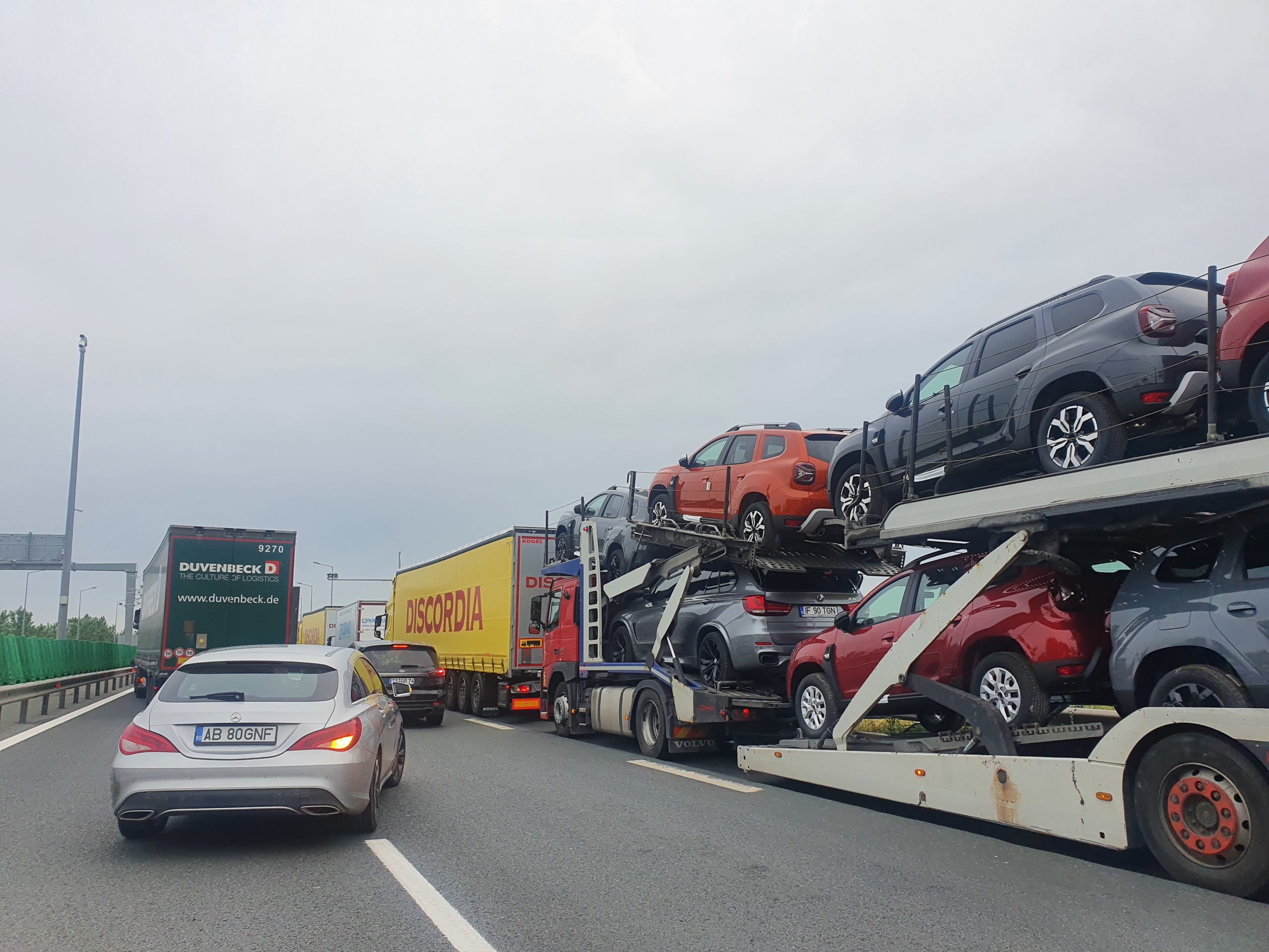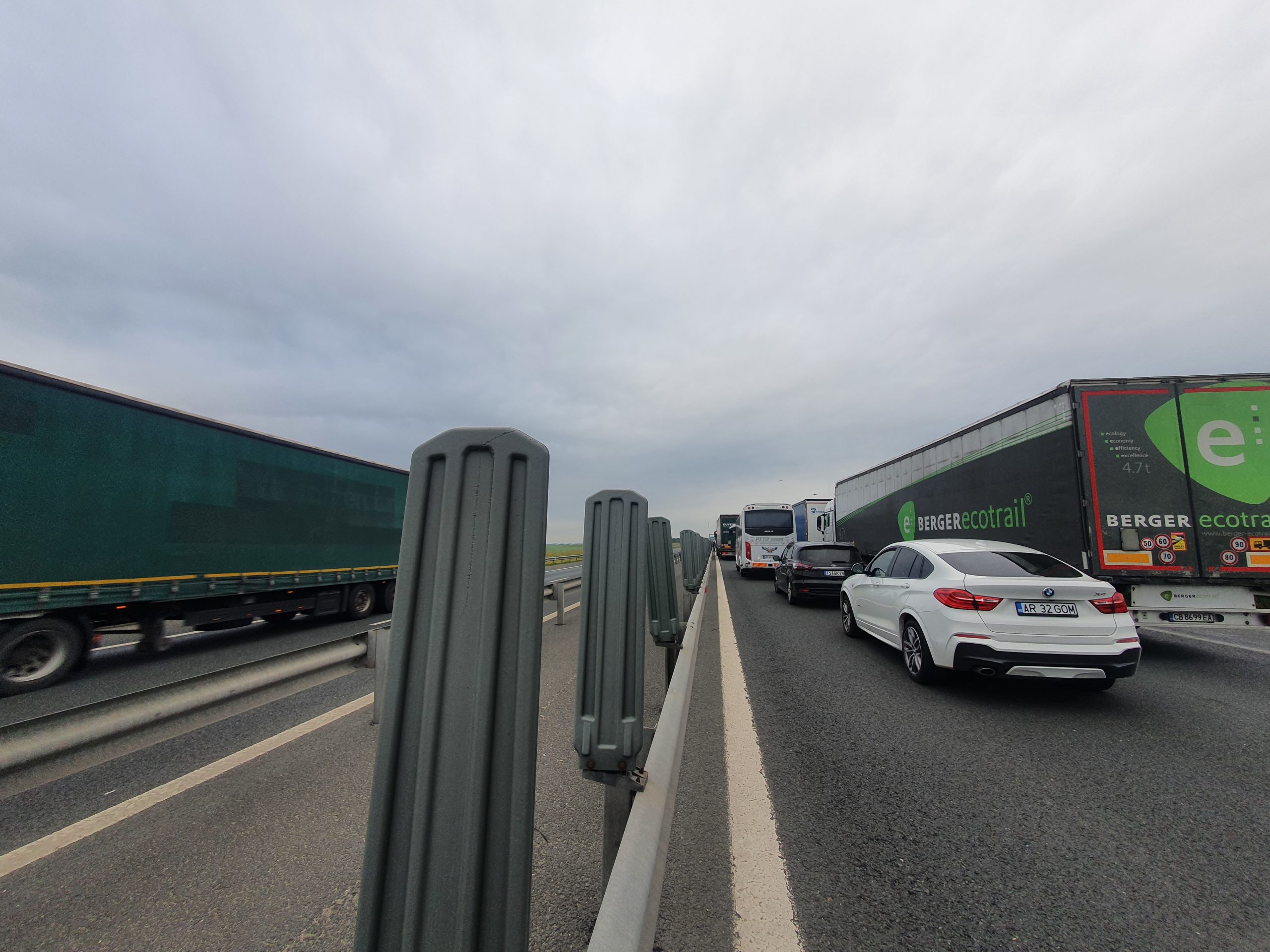 UPDATE. Traficul spre frontieră s-a “urnit” după ora 8.00, dar lucrurile nu s-au îndreptat prea mult, în condițiile în care nervii au cedat iar TIR-urile au intrat pe banda doi în încercarea de a bloca alte camioane să sară rândul și să ajungă în vamă mai repede. În plus, doar după ora 8, se lucra pe două artere din cele 3 anunțate pe site. Până atunci, potrivit participanților la trafic, se lucrase doar pe una. La ora 8.20, a fost deschisă și cea de a treia.