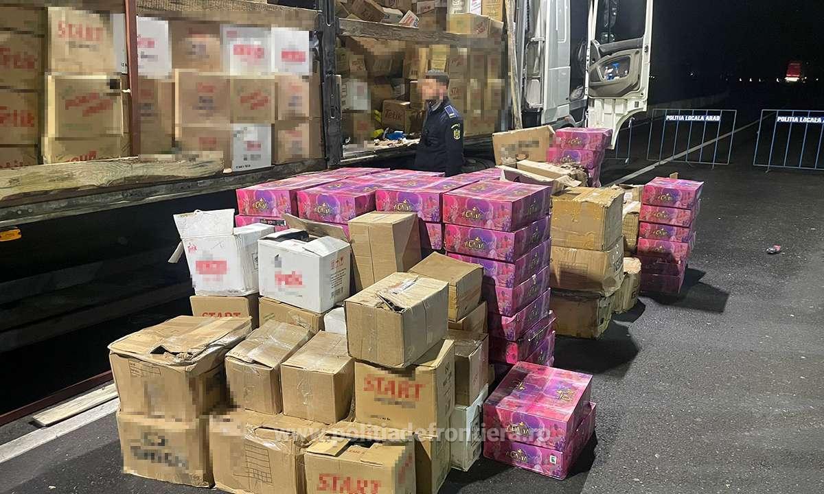 NĂDLAC. Șoferul camionului – înmatriculat în România – s-a prezentat miercuri, 16 martie, la Punctul de Trecere a Frontierei Nădlac II, pentru efectuarea formalităţilor de frontieră, pe sensul de ieşire din ţară. Acesta transporta, conform documentelor de însoţire a mărfii, diverse bunuri pentru o societate comercială din Belgia. În urma efectuării controlului amănunţit asupra mijlocului de transport, poliţiştii de frontieră au descoperit, ascunși în compartimentul pentru marfă, 23 de cetățeni străini. Totodată, cu ocazia verificării semiremorcii, printre marfa transportată, au fost descoperite mai multe cutii de carton care conţineau cantitatea de 5.751,5 kg de tutun pentru narghilea, pentru care șoferul nu a putut prezenta documente de însoţire.“Persoanele depistate ascunse au fost preluate și transportate la sediul sectorului pentru cercetări unde, în urma verificărilor, poliţiştii de frontieră au stabilit că cei în cauză sunt cetăţeni din Turcia, Siria, Irak și Pakistan, cu vârste cuprinse între 18 și 42 de ani și intenționau să ajungă în mod fraudulos într-un stat din Spațiul Schengen. Întreaga cantitate de tutun, în valoare estimativă de 5,7 milioane lei, a fost ridicată în vederea continuării cercetărilor, iar în cauză poliţiştii de frontieră efectuează cercetări sub aspectul săvârșirii infracțiunilor de tentativă de trecere frauduloasă a frontierei de stat pentru cetățenii străini și trafic de migranți și contrabandă pentru șoferul mijlocului de transport, la finalizare urmând să fie dispuse măsurile legale care se impun”, au declarat reprezentanții Serviciului Teritorial al Poliției de Frontieră Arad.