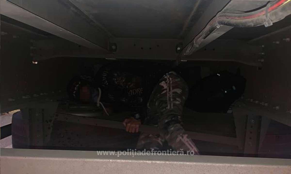 În aceeași zi, însă la Punctul de Trecere a Frontierei Nădlac II, a fost depistat un tânăr de Afganistan, ascuns pe osia din spate a unei semiremorci.