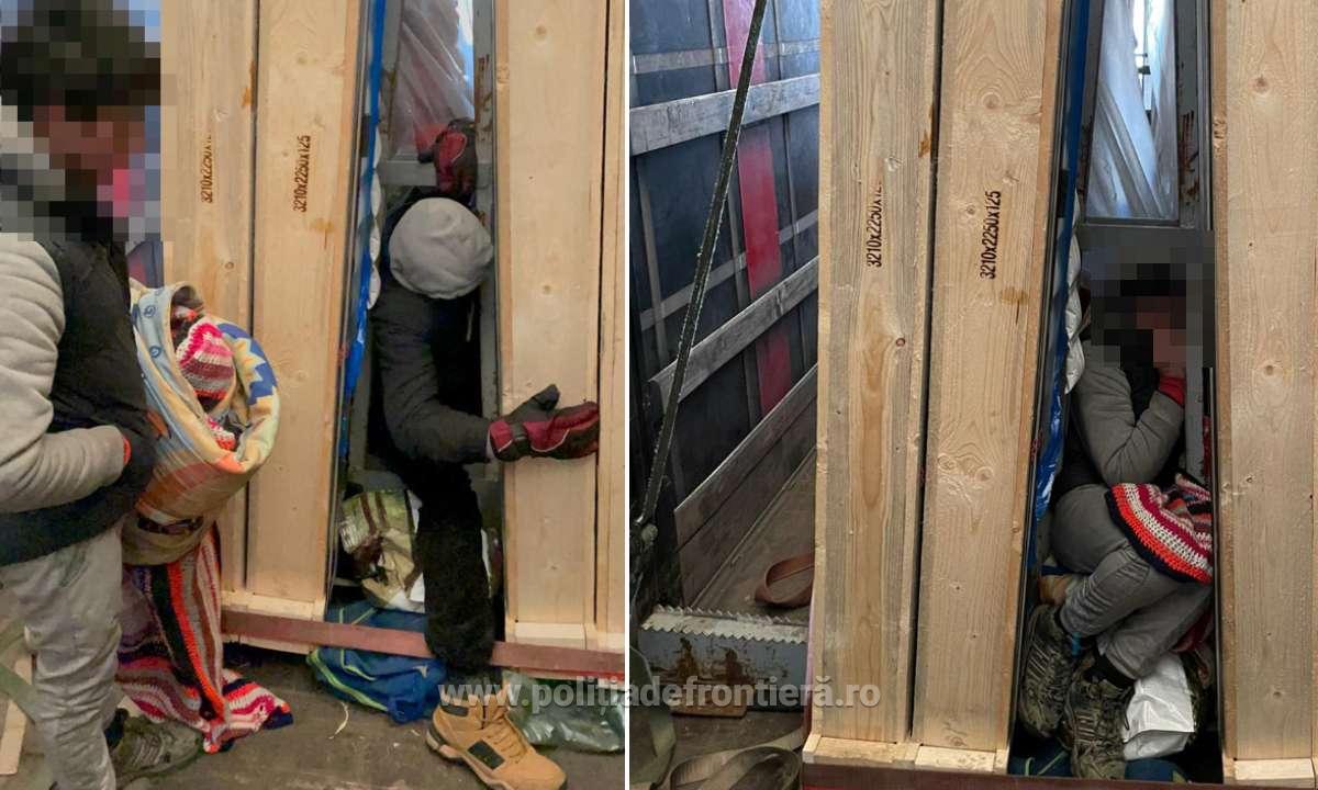 În Punctul de Trecere a Frontierei Nădlac II, poliţiştii de frontieră au fost sesizaţi de către şoferul unui automarfar, care transporta coli de metal pentru o societate din Franţa, cu privire la sunetele ce se auzeau din semiremorcă. În urma controlului au fost descoperiţi 3 cetăţeni afgani, solicitanţi de azil în ţara noastră.