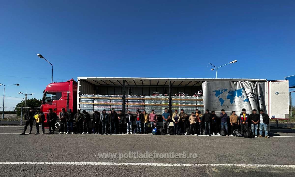 În baza profilului de risc s-a procedat la efectuarea unui control amănunțit al mijlocului de transport în urma căruia polițiștii de frontieră au descoperit, în compartimentul pentru marfă, ascunşi printre bunurile transportate, 27 de cetățeni străini.