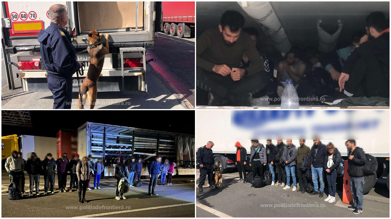 35 de migranți ascunși în două camioane încărcate cu mobilă şi piese auto