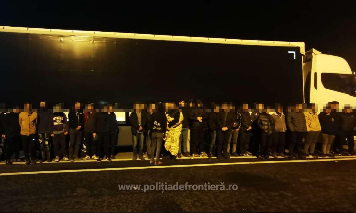 NĂDLAC. 38 dintre migranți au fost găsiți de polițiștii de frontieră de la Nădlac II, ascunși într-un camion înmatriculat în Turcia. Automarfarul – condus de un cetățean turc – transporta bare metalice pe ruta Turcia-Polonia. „În urma efectuării controlului amănunţit al mijlocului de transport, au fost descoperiţi, ascunşi în compartimentul pentru marfă, 38 de cetăţeni străini. Persoanele au fost preluate și transportate la sediul sectorului pentru cercetări unde, în urma verificărilor, poliţiştii de frontieră au stabilit că sunt cetăţeni din Siria, ce intenționau să treacă în mod fraudulos frontiera pentru a ajunge într-un stat din vestul Europei”, au transmis reprezentații Serviciului Teritorial al Poliției de Frontieră Arad.De asemenea, la Punctul de Trecere a Frontierei Vărșand, poliţiştii de frontieră au efectuat controlul asupra unui automarfar condus de un cetăţean român. În urma controlului efectuat asupra mijlocului de transport au fost descoperiți, în lăzile laterale ale semiremorcii, opt cetăţeni străini. În cadrul verificărilor s-a stabilit că cei opt sunt cetățeni din Sri Lanka, Bangladesh și Nepal, cu vârste cuprinse între 22 şi 41 de ani. În ambele cazuri, poliţiştii de frontieră efectuează cercetări în vederea stabilirii întregii activități infracționale, urmând ca la finalizare să fie dispuse măsurile legale care se impun.