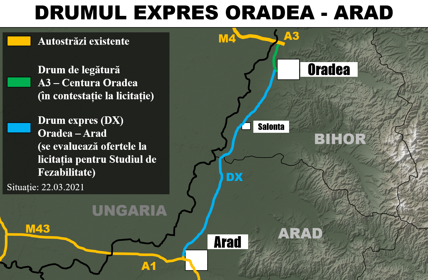 1 miliard de euro este valoarea estimată a lucrărilor pentru drumul expres Oradea – Arad, investiție care va fi realizată în parteneriat cu Compania Națională de Administrare a Infrastructurii Rutiere (CNAIR), prin accesarea fondurilor europene nerambursabile din cadrul programului operațional specific de transport.