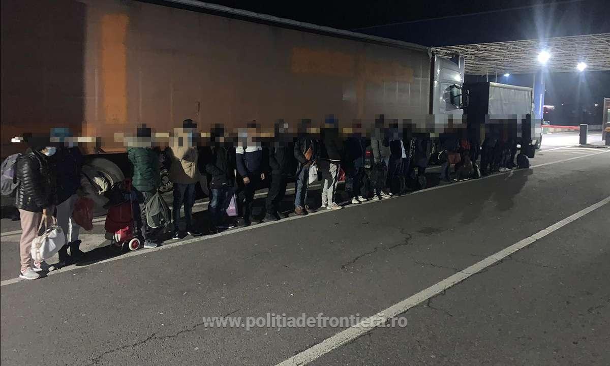 NĂDLAC. Reprezentanții Serviciului Teritorial al Poliției de Frontieră Arad au anunțat că în ultimele 24 de ore la Punctul de Trecere a Frontierei Nădlac II s-au prezentat pentru efectuarea formalităţilor de frontieră, pe sensul de ieşire din ţară, trei cetățeni români, care conduceau un ansamblu rutier și două autoutilitare, toate înmatriculate în România. În urma controalelor efectuate asupra mijloacelor de transport, polițiștii de frontieră au descoperit, în compartimentele pentru marfă, respectiv în cabina de dormit a unei autoutilitare, 45 de cetățeni străini. Aceştia au fost conduşi la sediul sectorului poliţiei de frontieră pentru cercetări, stabilindu-se în urma verificărilor că persoanele sunt cetățeni din Sri Lanka, Bangladesh, Pakistan, Siria și Nepal ce intenţionau să treacă ilegal frontiera pentru a ajunge în diferite state din Spaţiul Schengen. O parte dintre aceştia au solicitat o formă de protecţie pe teritoriul României, alţii figurau ca fiind intraţi legal în România.Și polițiștii de frontieră de la Punctul de Trecere a Frontierei Nădlac I au efectuat controlul amănunţit asupra unei autoutilitare conduse de un cetăţean român. În urma controlului efectuat asupra mijlocului de transport au fost descoperiți – în cabina de dormit a autoutilitarei – cinci cetăţeni străini. Despre aceştia, polițiștii de frontieră au stabilit că sunt cetățeni din Siria, solicitanţi de azil. De asemenea, poliţiştii de frontieră din cadrul Sectorului Poliţiei de Frontieră Nădlac au observat, la aproximativ 20 de metri de linia de frontieră, două persoane care se deplasau pe jos. Polițiștii de frontieră spun că persoanele nu îşi justificau prezenţa în zonă, astfel că au fost conduse la sediul sectorului pentru efectuarea verificărilor. În urma cercetărilor s-a stabilit că sunt cetățeni din Bangladesh, în vârstă de 21 respectiv 29 de ani şi figurau ca fiind intraţi legal în România.„În toate cazurile, şoferii sunt cercetaţi pentru săvârşirea infracţiunii de trafic de migranţi, iar polițiștii de frontieră continuă cercetările în vederea stabilirii întregii activități infracționale, urmând ca la finalizare să fie dispuse măsurile legale ce se impun”, au transmis reprezentanții Serviciului Teritorial al Poliției de Frontieră Arad.