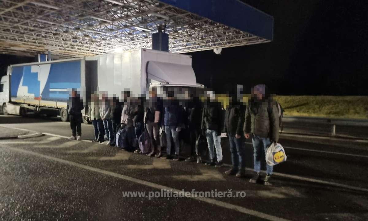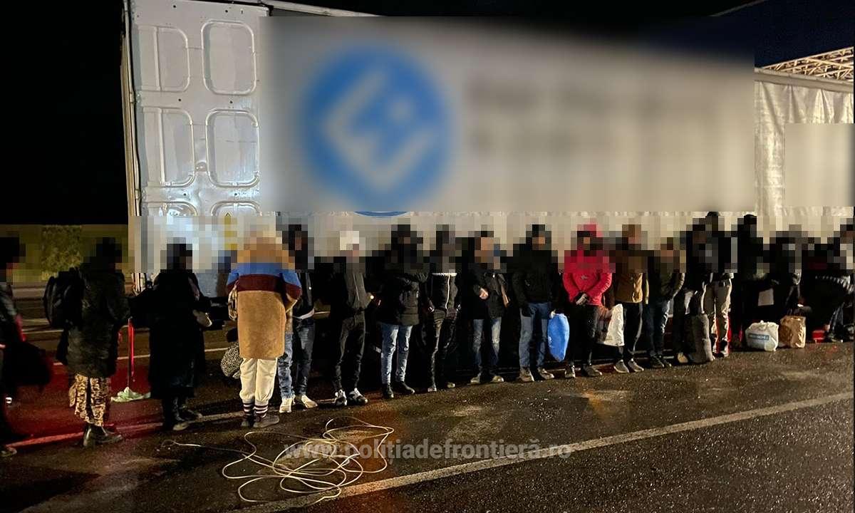 NĂDLAC. Poliţiştii de frontieră din cadrul Punctului de Trecere a Frontierei Nădlac II au depistat 52 de cetăţeni străini din Bangladesh, Egipt, Maroc, Somalia, Siria, Liban, Turcia și Irak care au încercat să treacă ilegal frontiera în Ungaria, ascunşi în trei mijloace de transport care transportau paleți, profile de aluminiu și metal pentru societăți din Austria și Marea Britanie. Potrivit reprezentanților Serviciului Teritorial al Poliției de Frontieră Arad „la Punctul de Trecere a Frontierei Nădlac II, s-au prezentat pentru efectuarea formalităţilor de frontieră pe sensul de ieşire din ţară, un cetățean moldovean, respectiv doi turci, conducând o autoutilitară înmatriculată în Slovacia, respectiv două ansambluri rutiere înmatriculate în Turcia și Austria. Șoferii transportau, conform documentelor de însoţire a mărfii, paleți, profile de aluminiu și metal pentru societăți comerciale din Austria și Marea Britanie. În baza analizei de risc, poliţiştii de frontieră au efectuat un control amănunţit al celor trei mijloace de transport. Astfel, au fost descoperiţi, ascunşi în compartimentele pentru marfă, în total, 52 de cetăţeni străini. Persoanele au fost preluate și transportate la sediul sectorului pentru cercetări unde, în urma verificărilor, colegii noștri au stabilit că sunt cetăţeni din diverse state – Bangladesh, Egipt, Maroc, Somalia, Siria, Liban, Turcia și Irak – ce intenționau să ajungă în mod fraudulos în state din vestul Europei. În toate cazurile, poliţiştii de frontieră efectuează cercetări în vederea stabilirii întregii activități infracționale, urmând ca la finalizare să fie dispuse măsurile legale care se impun”.