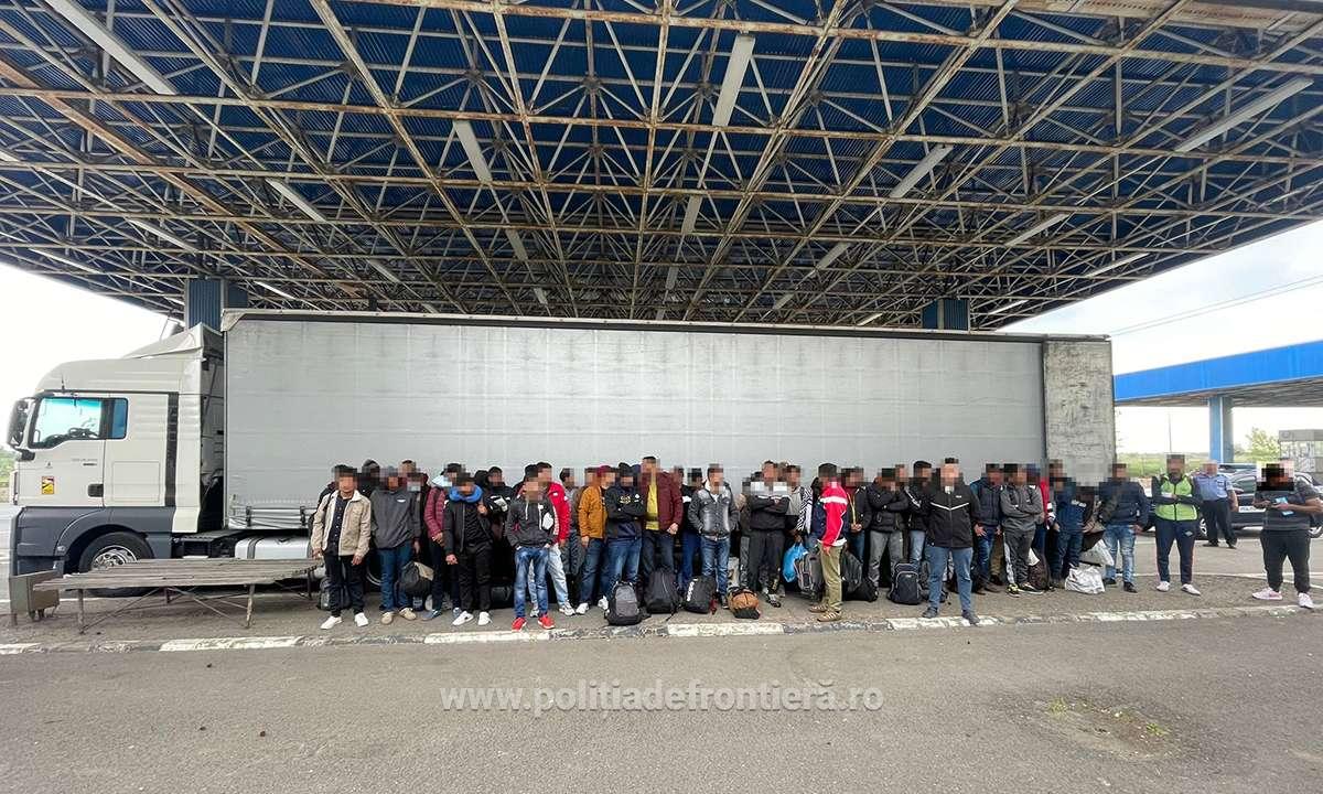 NĂDLAC. În primul automarfar – care transporta frigidere pe ruta România – Italia – erau ascunși 53 de cetățeni străini. Este vorba despre cetățeni din Bangladesh, India, Pakistan și Eritreea, cu vârste cuprinse între 19 și 46 de ani. “La Punctul de Trecere a Frontierei Nădlac II, s-a prezentat pentru efectuarea formalităţilor de frontieră, pe sensul de ieşire din ţară, un cetăţean român în vârstă de 28 de ani, aflat la volanul unui ansamblu rutier, înmatriculat în România. Conform documentelor de însoţire a mărfii, acesta transporta frigidere pe ruta România – Italia. În urma verificării mijlocului de transport, poliţiştii de frontieră au constatat că remorca avea cablul de prindere al prelatei secţionat şi lipit, sens în care s-a procedat la efectuarea unui control amănunţit. Astfel, au fost descoperiţi, ascunși în compartimentul pentru marfă, 53 de cetățeni străini. Persoanele descoperite au fost preluate și transportate la sediul sectorului Poliţiei de Frontieră pentru cercetări. În urma verificărilor preliminare, poliţiştii de frontieră au stabilit faptul că este vorba despre 10 cetăţeni din Bangladesh, 18 cetăţeni din India, 24 de cetăţeni din Pakistan şi unul din Eritreea, cu vârste cuprinse între 19 şi 46 de ani. Cei în cauză intenționau să ajungă în mod fraudulos într-un stat din Spațiul Schengen”, au declarat reprezentanții Serviciului Teritorial al Poliției de Frontieră Arad.
