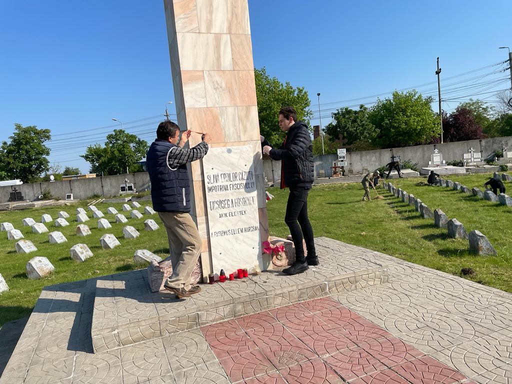 Elevii din clasele a IX-a și a X-a, care învață la Colegiul Național Vasile Goldiș din Arad au venit, miercuri dimineață, să igienizeze cele aproape 900 de pietre funerare ridicate în memoria soldaților căzuți în al Doilea Război Mondial. Adolescenții au așezat flori la căpătâiul eroilor căzuți pe front și au avut parte de o lecție de istorie în aer liber.