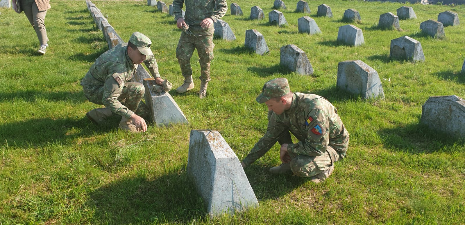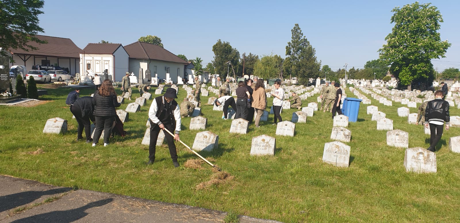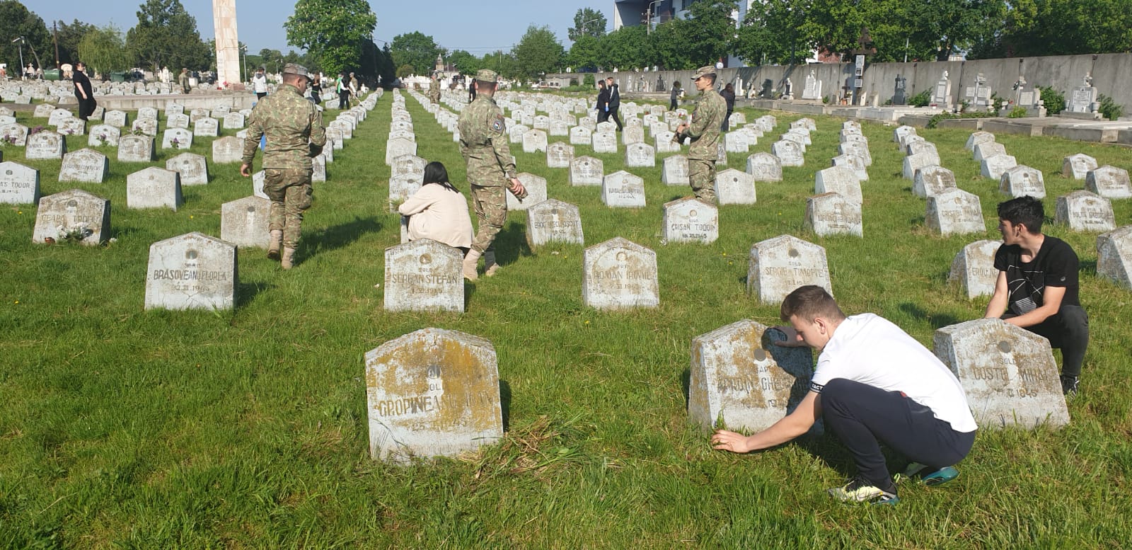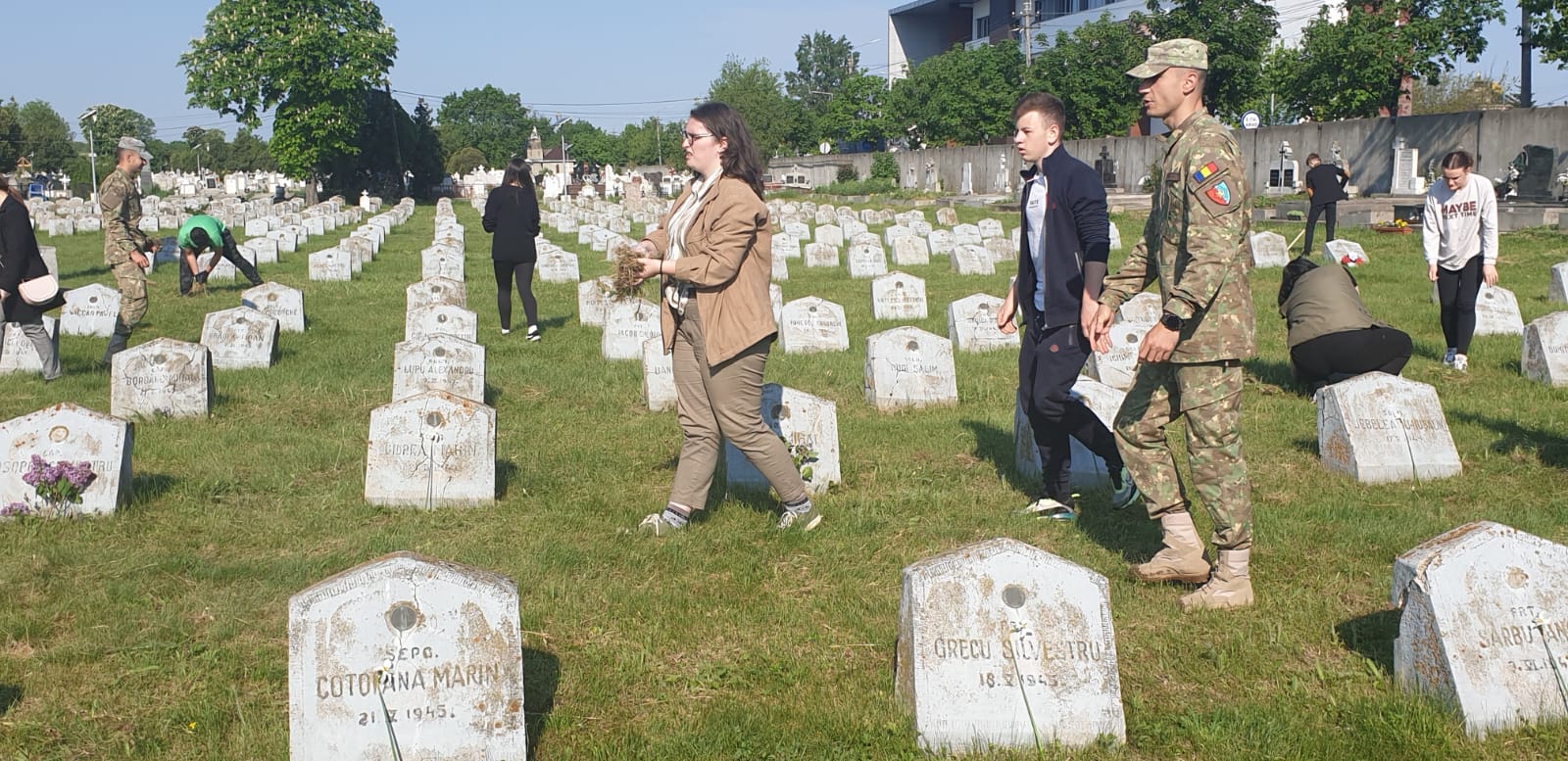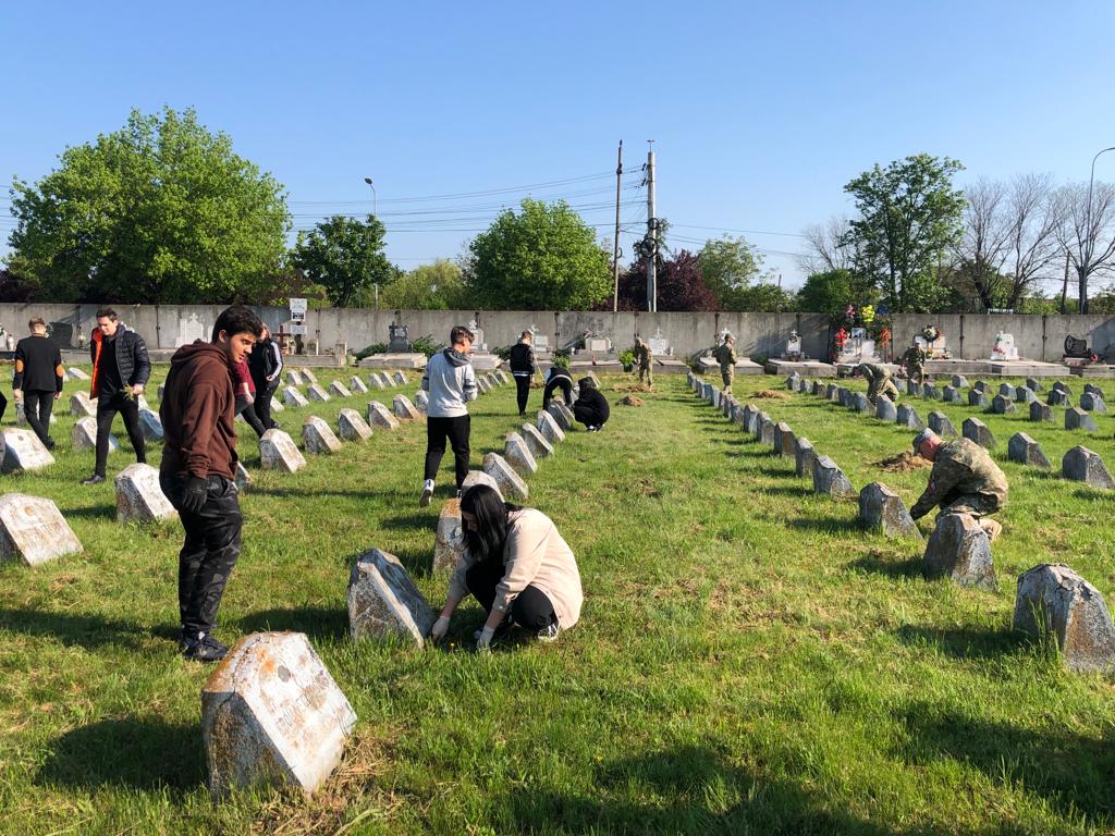 Arad. Lecție inedită de istorie pentru câteva zeci de elevi din Arad. Aceștia au dat o mână de ajutor la curățarea mormintelor eroilor căzuți în al Doilea Război Mondial. Acțiunea a fost organizată de Batalionul 191 Infanterie Arad cu ocazia Zilei Independenței de Stat a României, care se sărbătorește pe data de 9 mai.