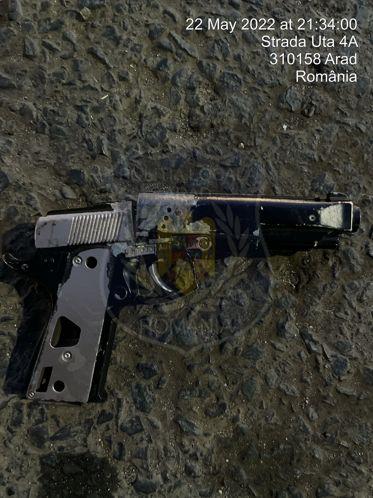 A fost solicitată Salvarea, precum și prezența unui echipaj de la Poliția Municipiului, care a preluat pistolul respectiv, iar făptașul a fost transportat la Unitatea de Primiri Urgențe și ulterior internat la Secția de Psihiatrie a Spitalului Județean Arad”, informează Poliția Locală într-un comunicat de presă.