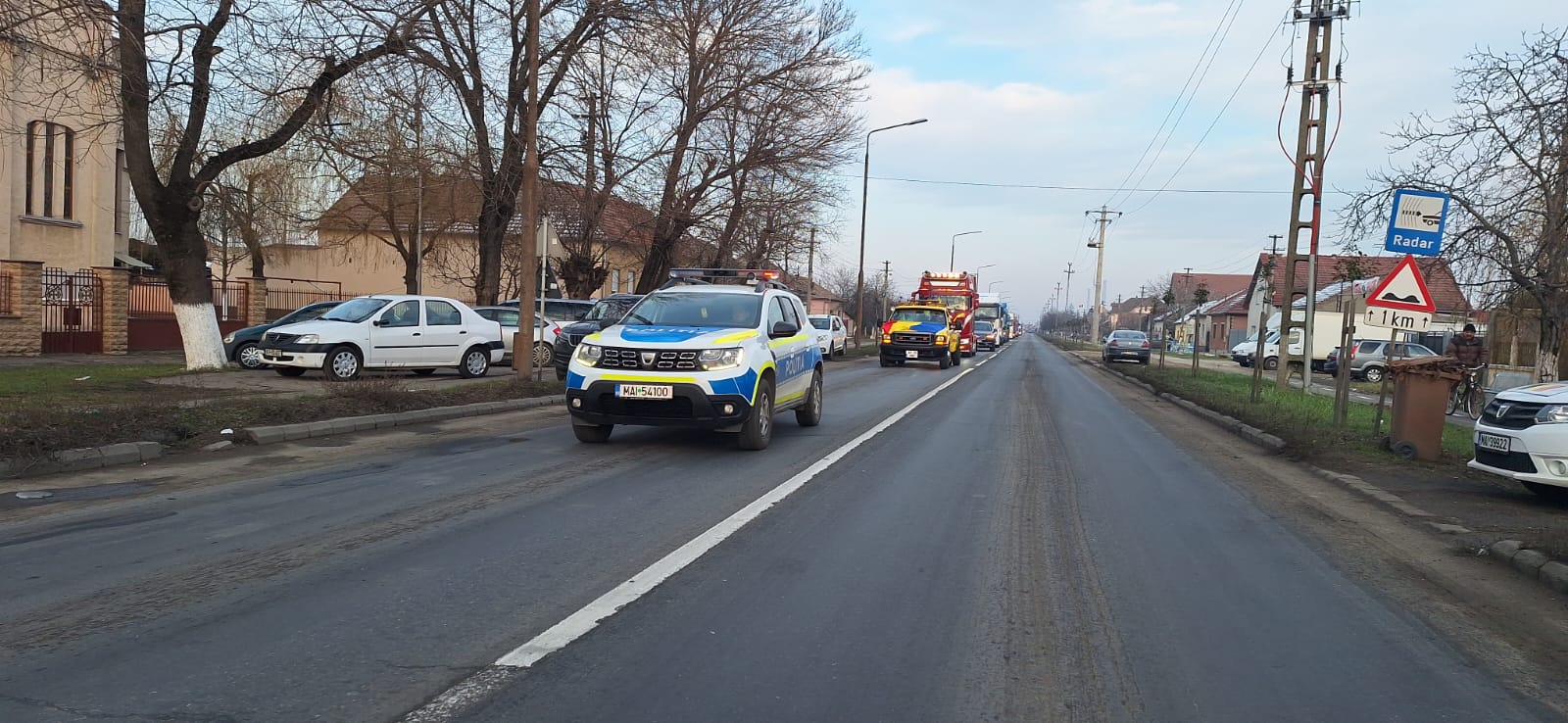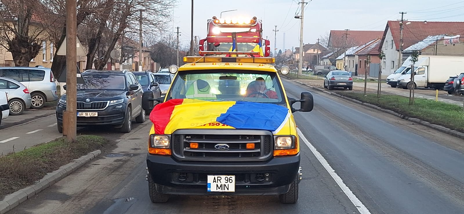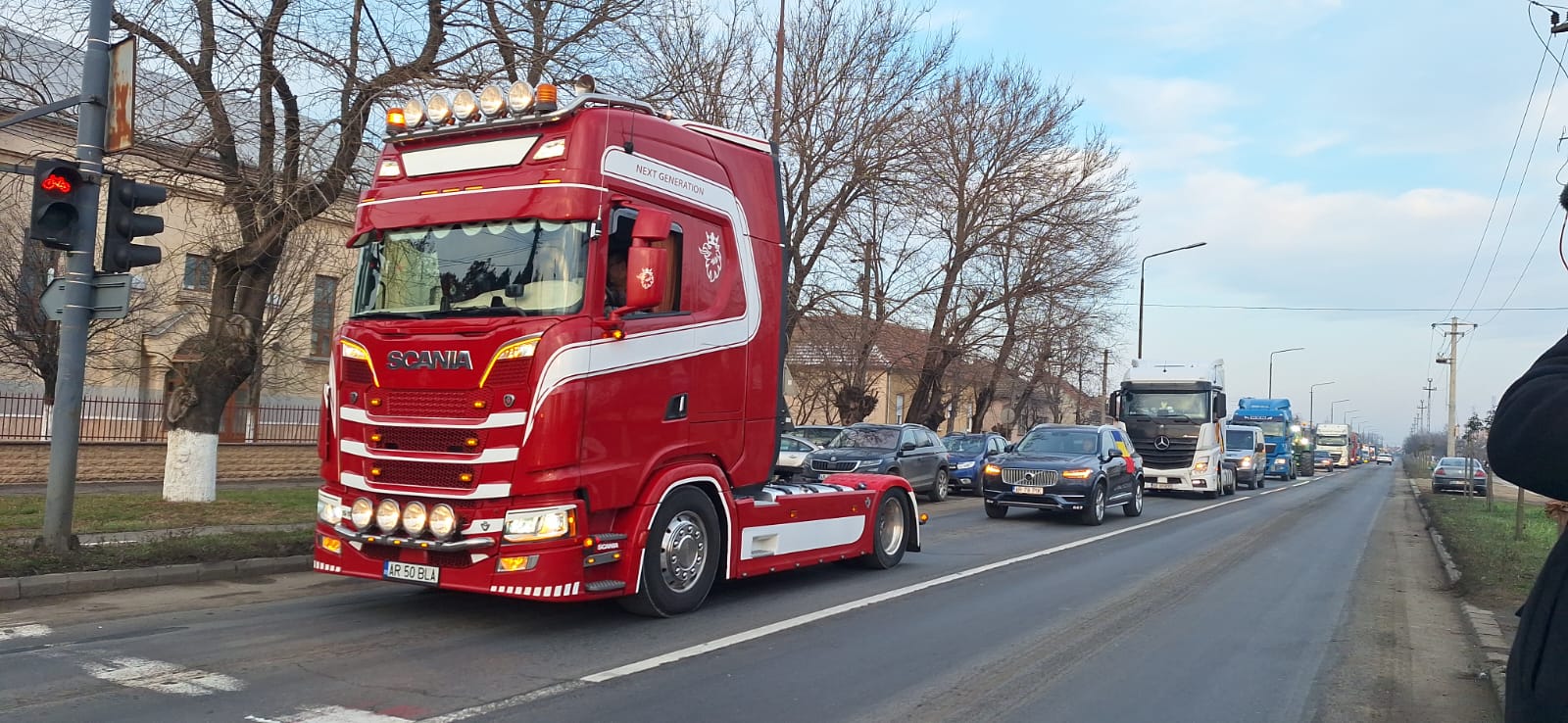 Protestatarii s-au întâlnit în parcarea unui mare centru comercial de la intrarea în Arad dinspre Deva, de unde au pornit în coloană cu viteză extrem de redusă pe șoseaua de centură a Aradului, parte din DN7, iar în final s-au intors de unde au plecat. Coloana de protestatari a avut în deschidere o mașină de poliție și a fost insoțită de jandarmi. Peste tot, autoritățile au dirijat circulația, astfel incât și celelalte mașini care s-au intersectat coloana de protestatari să poată circula fără incidente