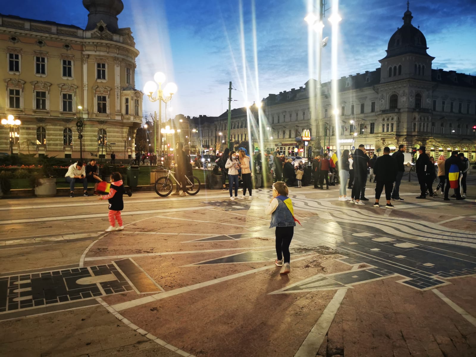 Ora 20:00 – Aproximativ 50 de persoane s-au adunat deja pe esplanada din fața Primăriei. Forțele de ordine sunt deja în dispozitiv, pentru a supraveghea desfășurarea evenimentelor.