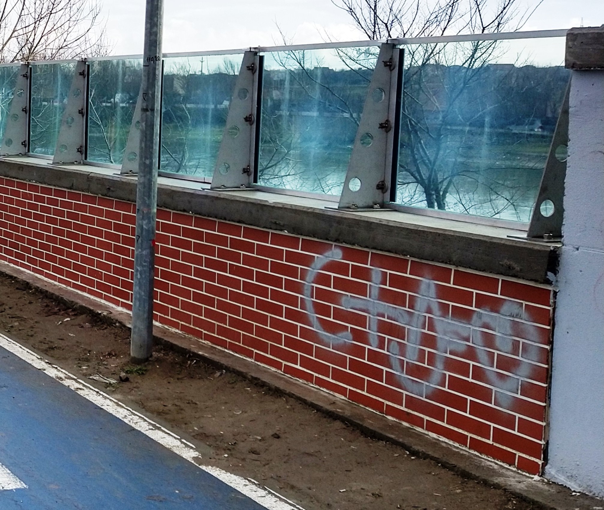 Din păcate, noul dig începe să semene cu vechiul, dintr-un punct de vedere: şi acesta este mâzgălit cu vopsea. Amatorii de graffiti au început să-şi pună amprenta, distrugând aspectul plăcut al zidului care imită cărămida. Chiar şi panourile din sticlă au fost distruse pe alocuri folosindu-se tuburi de spay cu vopsea neagră.