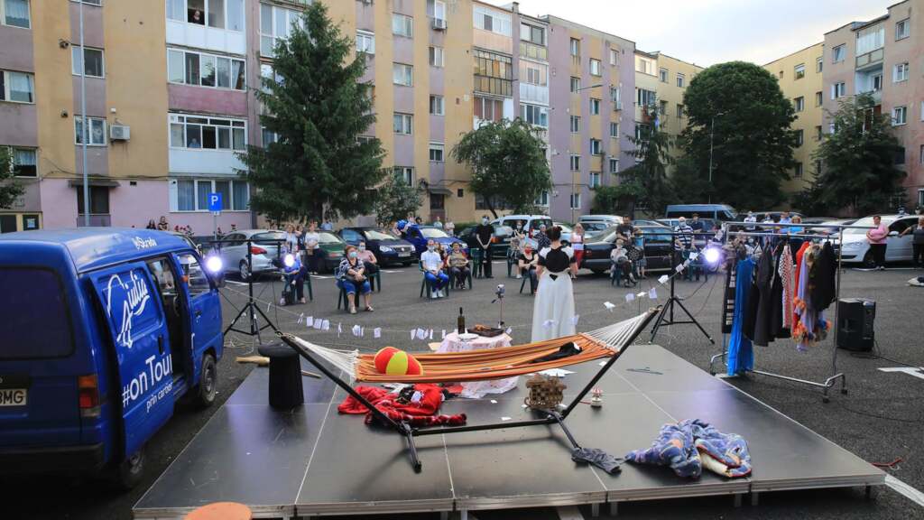 Vineri seară, arădenii au avut două surprize în cartiere, spectacolele „Giulia/singură acasă” și „Apropo, ați chemat pompierii”. Cele două spectacole au rulat în spațiile dintre blocuri, iar arădenii au ieșit la ferestre pentru a servi o porție de cultură.