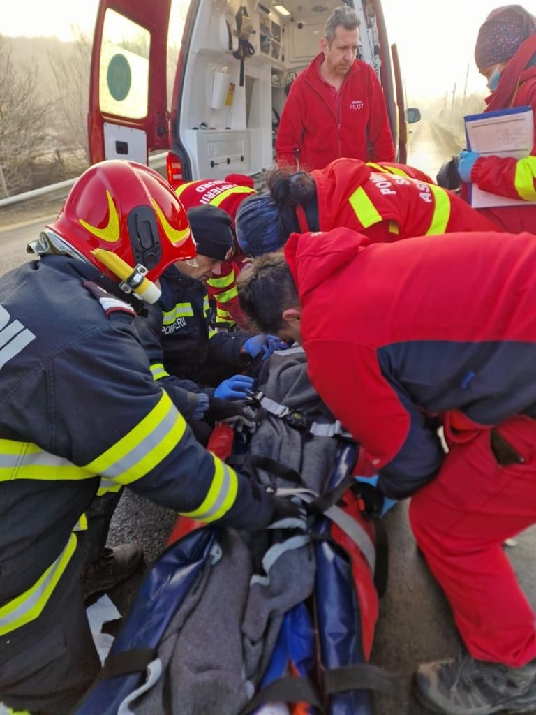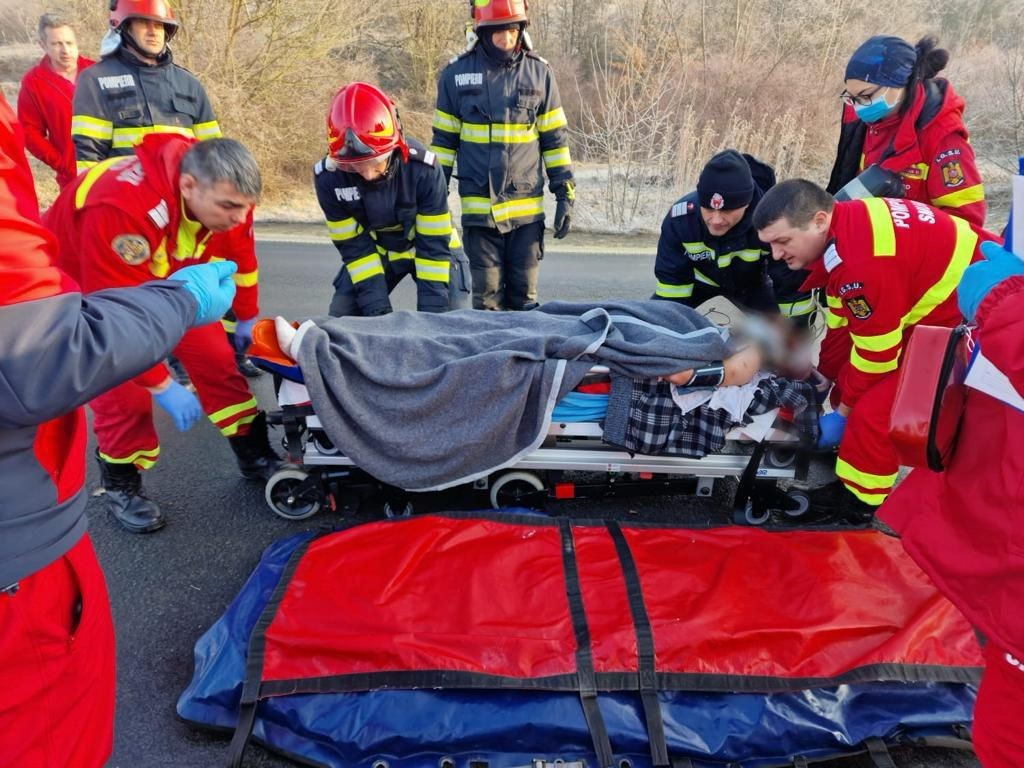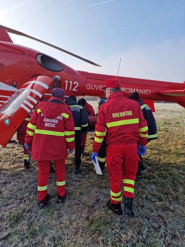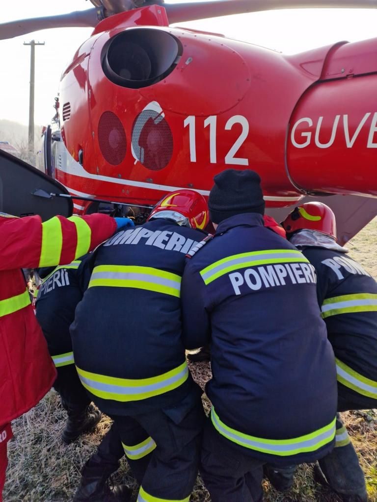 UPDATE. ISU Arad anunță că „în sprijinul forțelor a fost solicitat elicopterul SMURD care a preluat victima și a transportat-o la spital pentru îngrijiri și investigații medicale suplimentare. Pompierii au acționat și pentru asigurarea măsurilor de prevenire și stingere a incendiilor la locul evenimentului”.