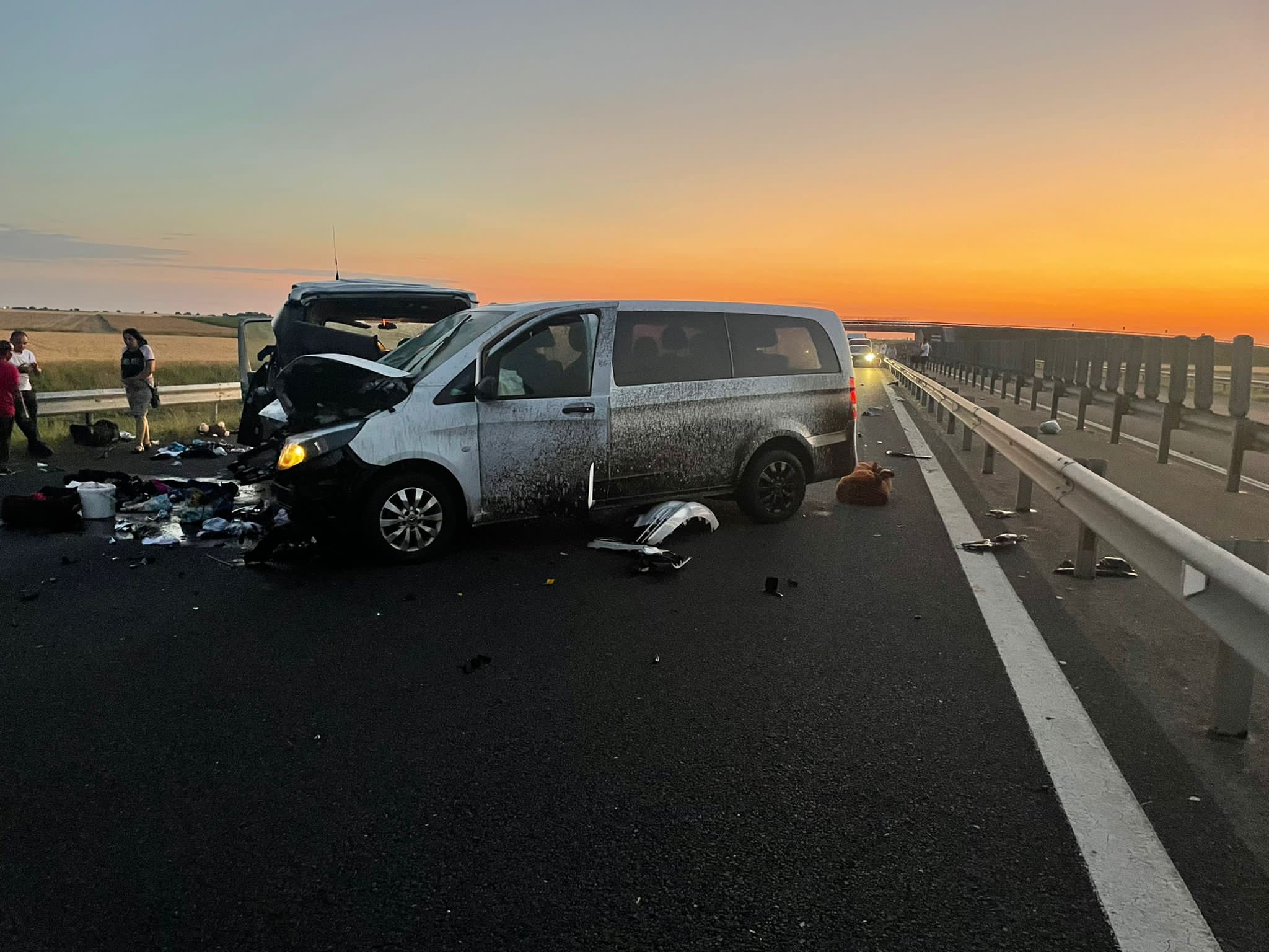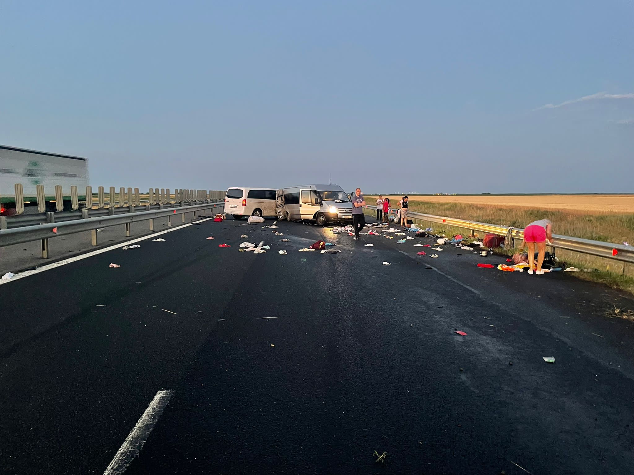 Potrivit IPJ Arad, accidentul s-a petrecut la km 562, calea 2. „Este vorba de impact între 2 microbuze, unul a intrat în coliziune cu un alt microbuz care se deplasa în față. În urma impactului au fost rănite ușor mai multe persoane, numărul celor transportate la spital urmând a fi stabilit de echipajul medical. Traficul e blocat, coloana e de aproximativ 1,5 km”, transmite Biroul de presă.