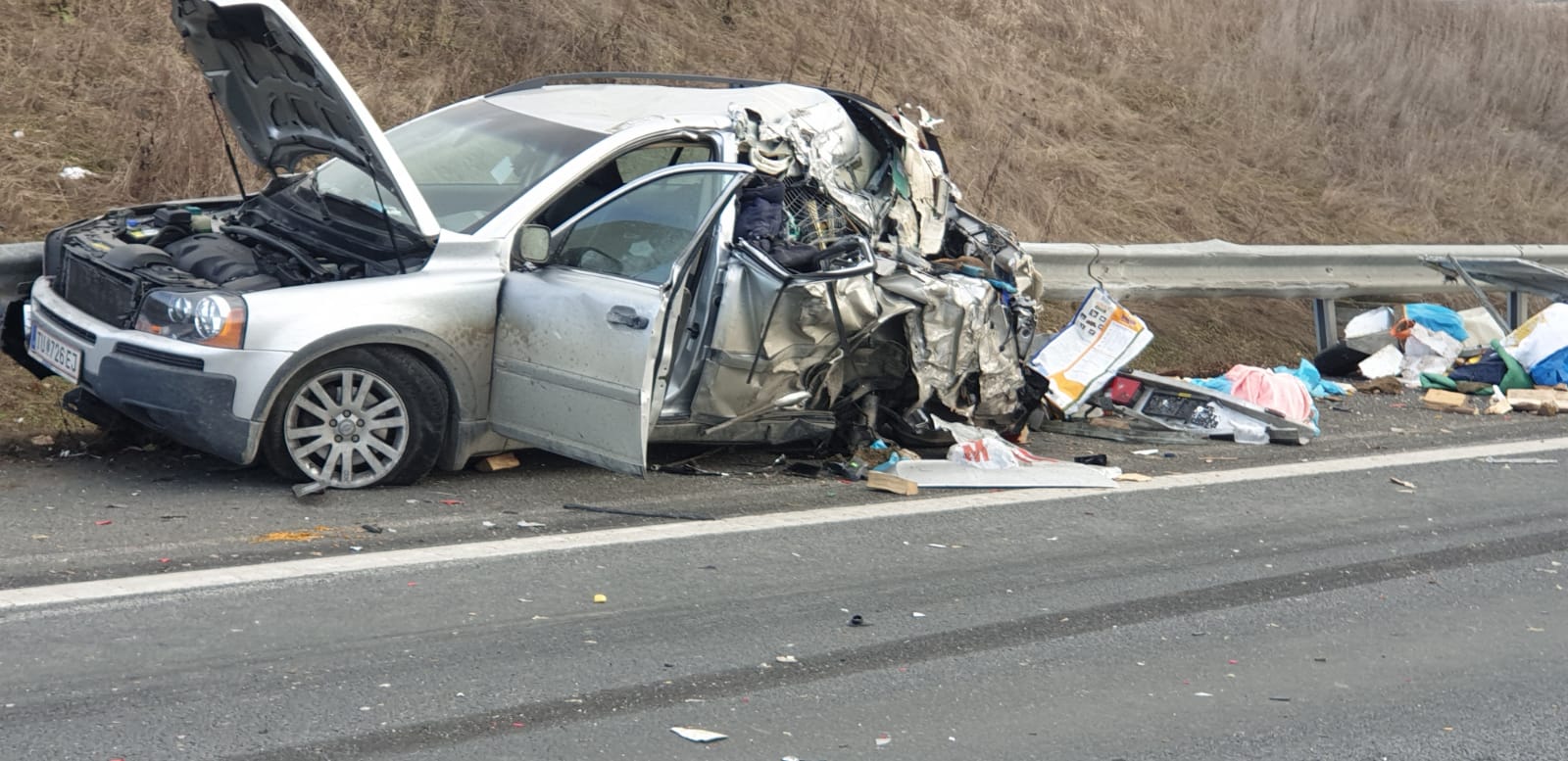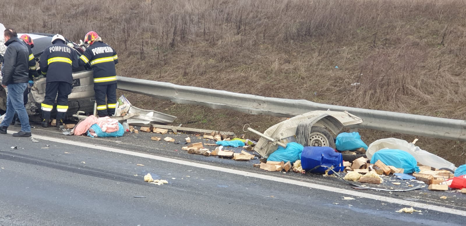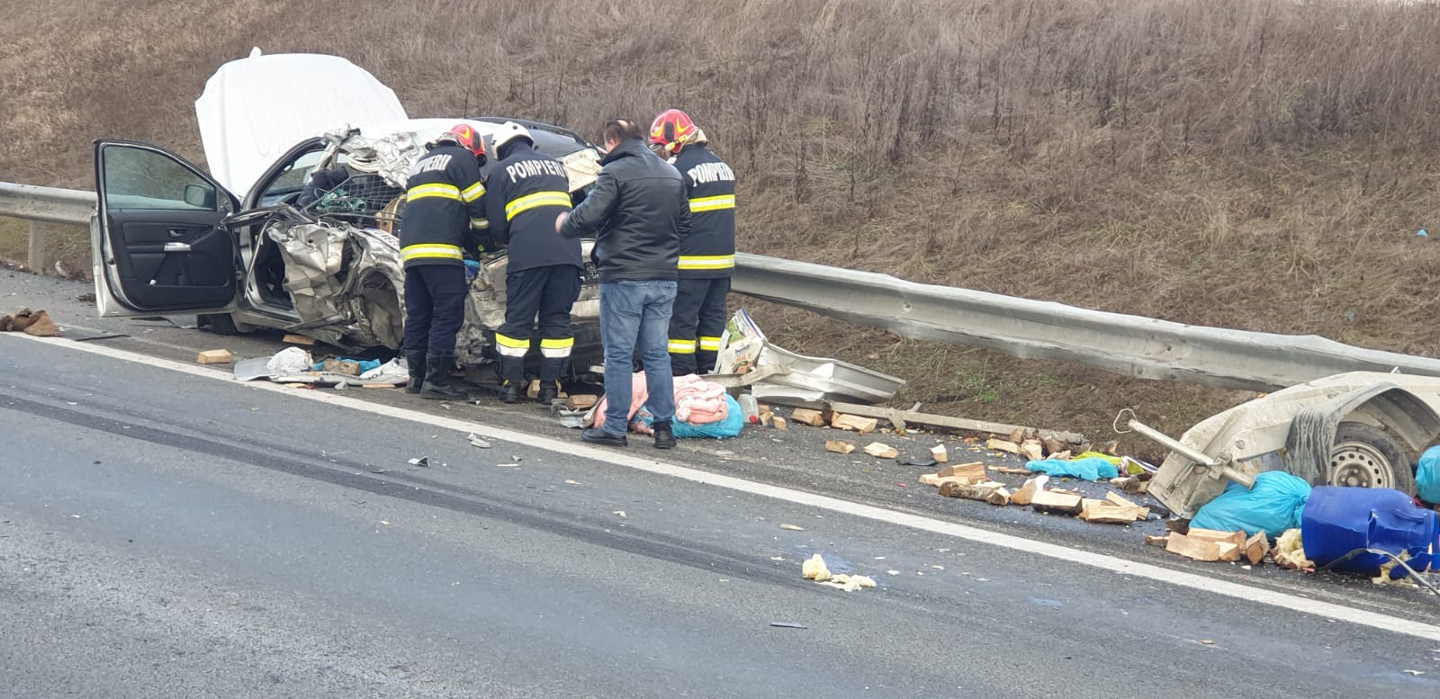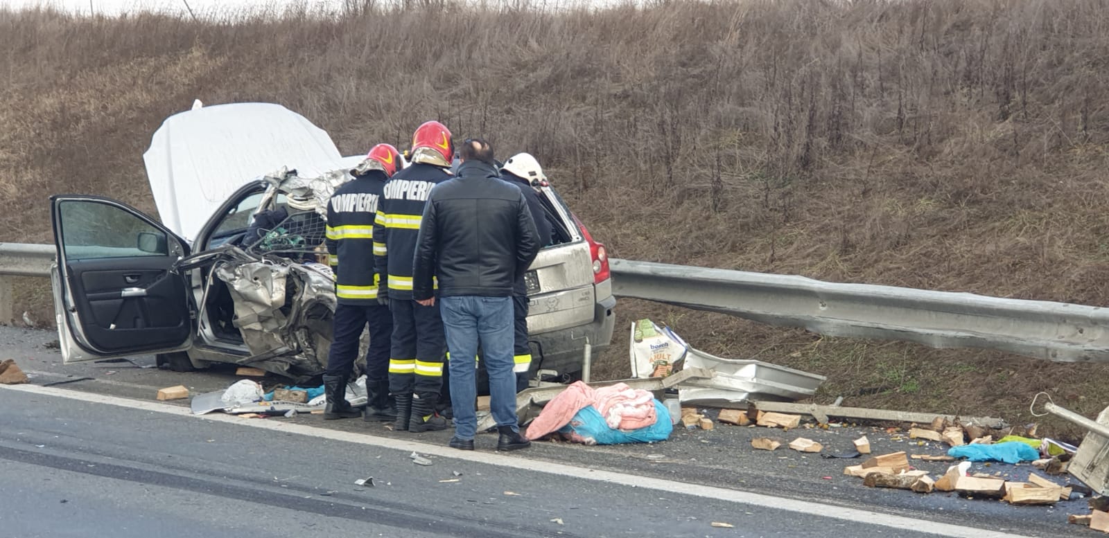 Dar, totusi, nu inteleg cum a intrat ala cu tirul ca taurul comunal in masina stationata pe banda de urgenta…?! Daca o masina este stationata de banda de urgenta si nu are o urgenta reala (desi in cazul asta avea), intri in ea, asa, ca idiotul? Se vad niste urme de franare foarte ciudate intr-o poza…