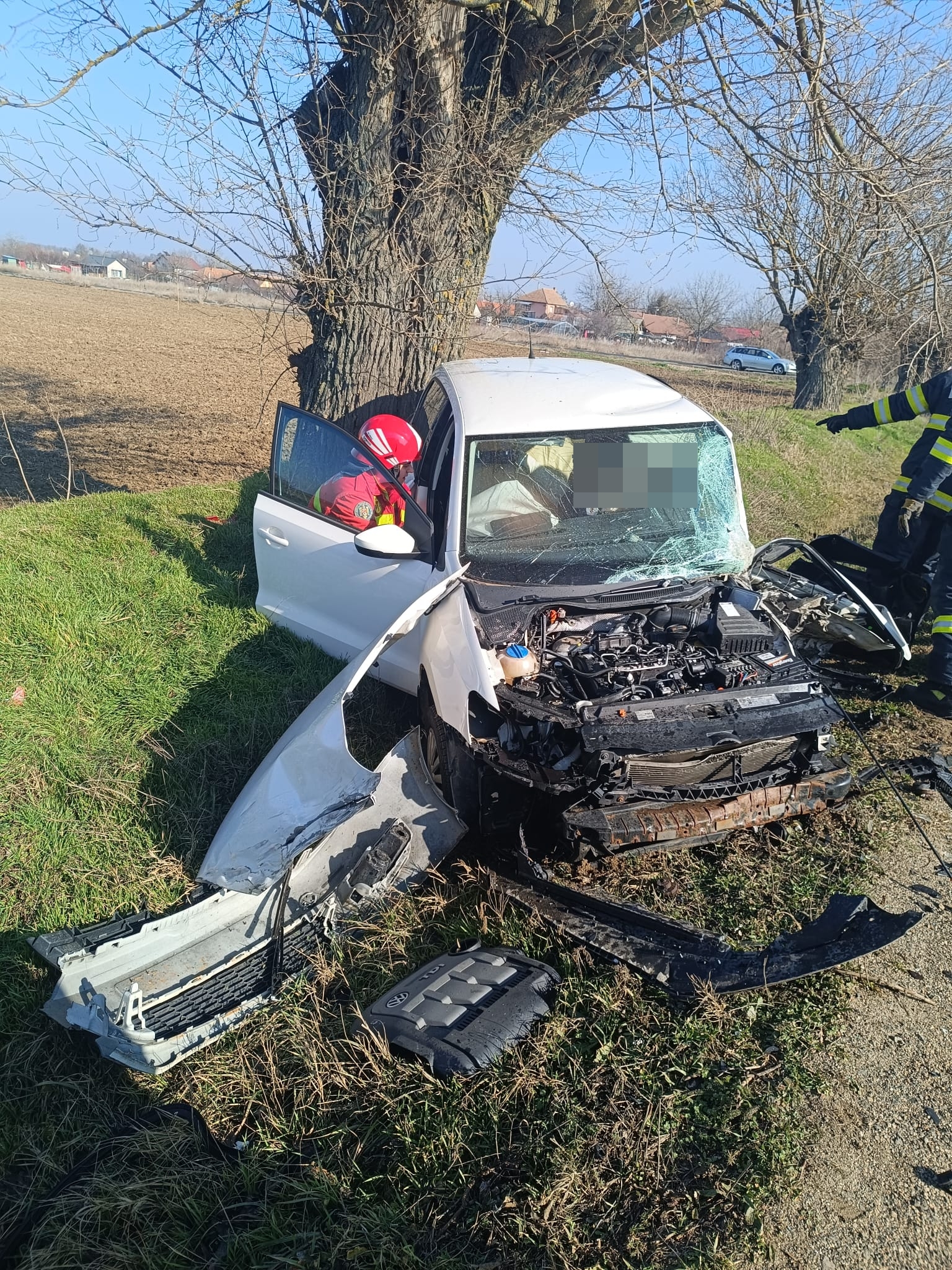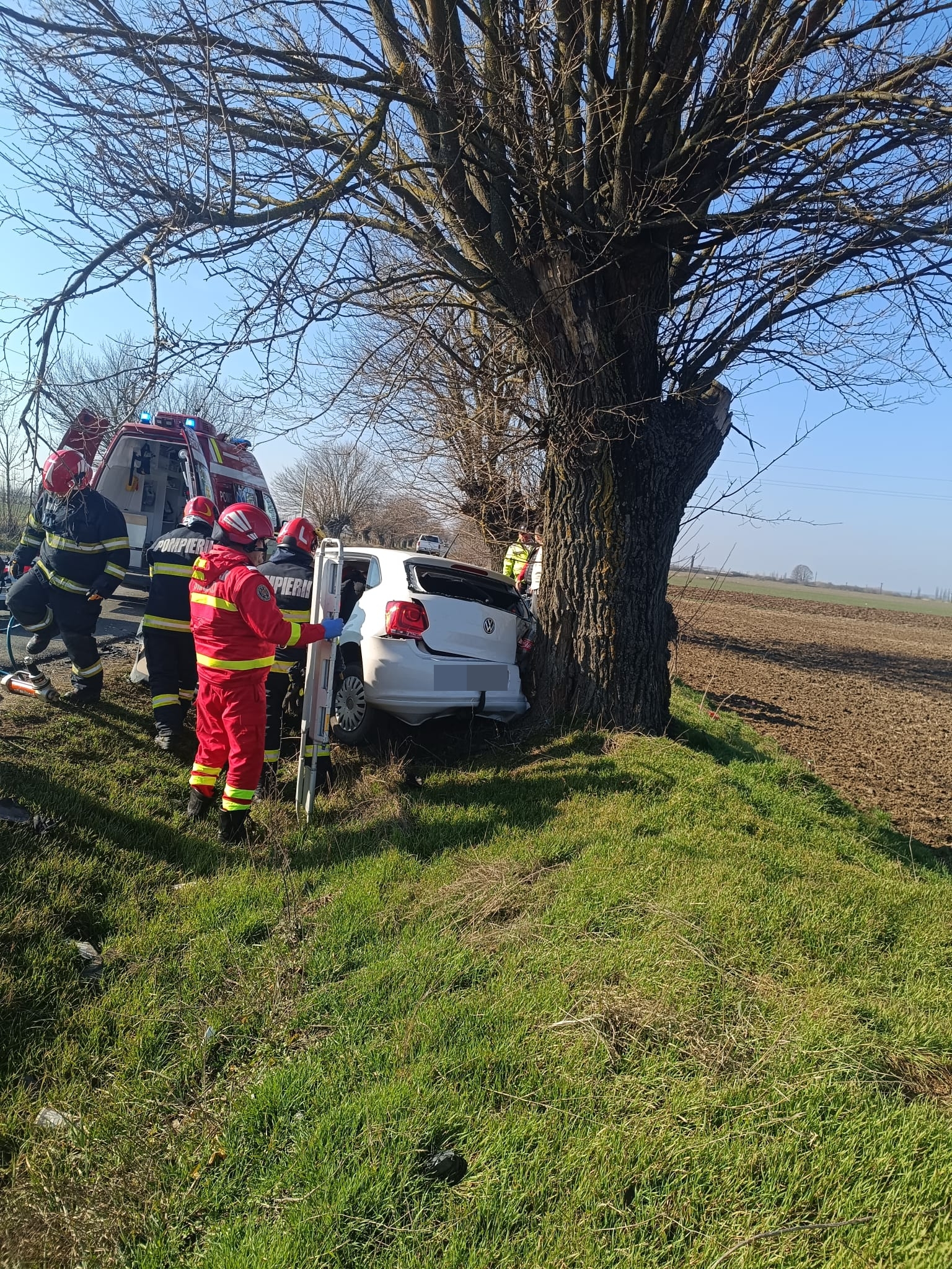Salvatorii din cadrul Detașamentului de Pompieri Arad au fost solicitați, în jurul orei 11:45, să intervină la un accident rutier cu posibile victime încarcerate, la ieșirea din localitatea Călugăreni spre Felnac.