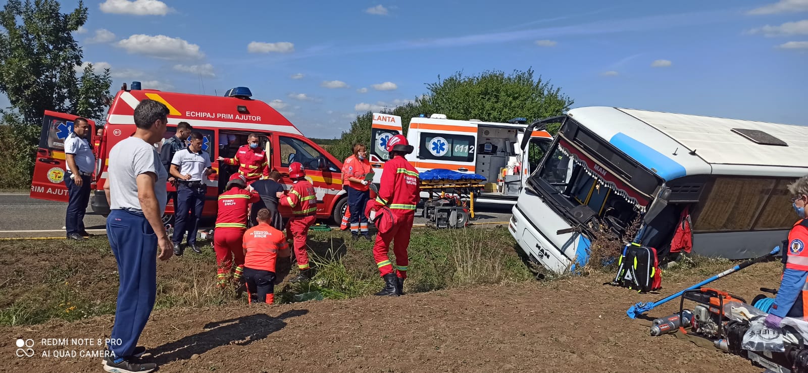 „Din primele cercetări efectuate de polițiștii rutieri la fața locului, in evenimentul rutier a fost implicat un singur autovehicul, respectiv un autobuz, care s-a răsturnat într-un șanț. Opt persoane, pasageri in autovehicul, necesita îngrijiri medicale la fata locului, urmând sa fie transportate la spital, pentru investigații medicale. Polițiștii rutieri efectuează cercetarea la fața locului, pentru stabilirea cauzelor și împrejurărilor producerii accidentului rutier”, a declarat comisarul-șef IPJ Bihor, Alina Fărcuța.