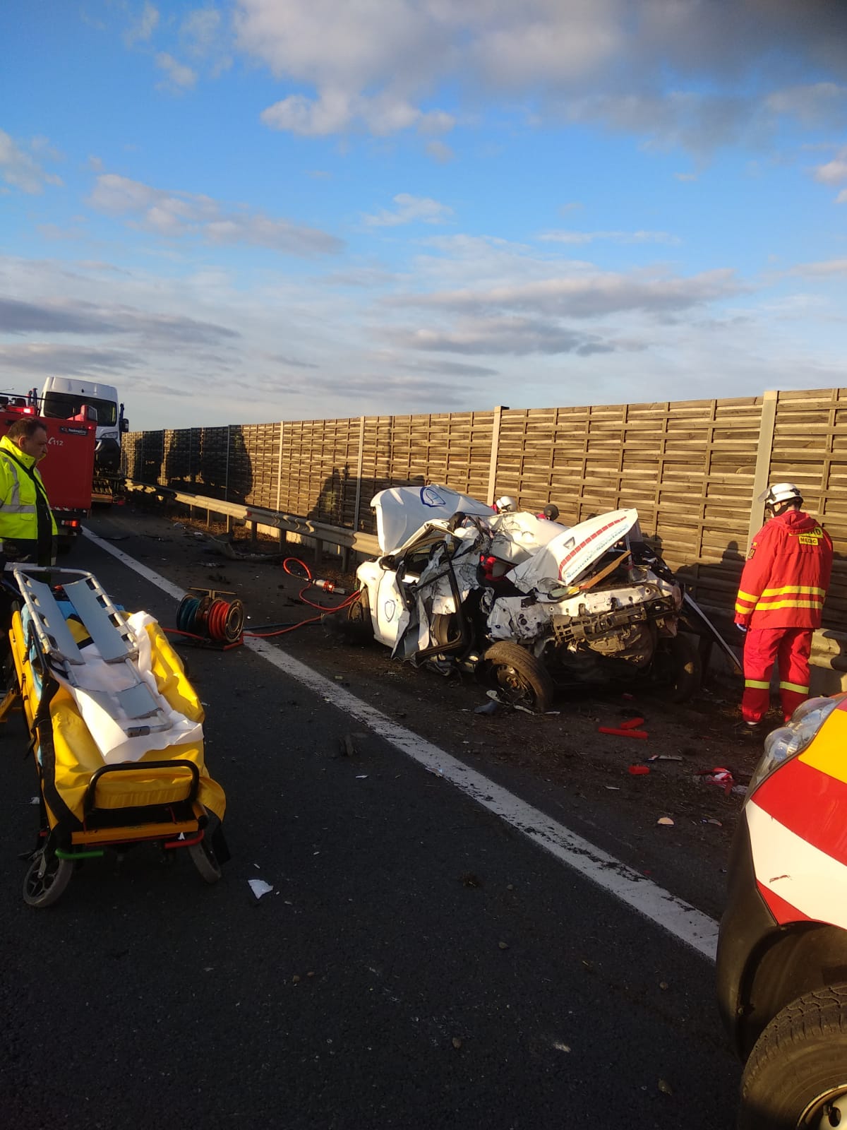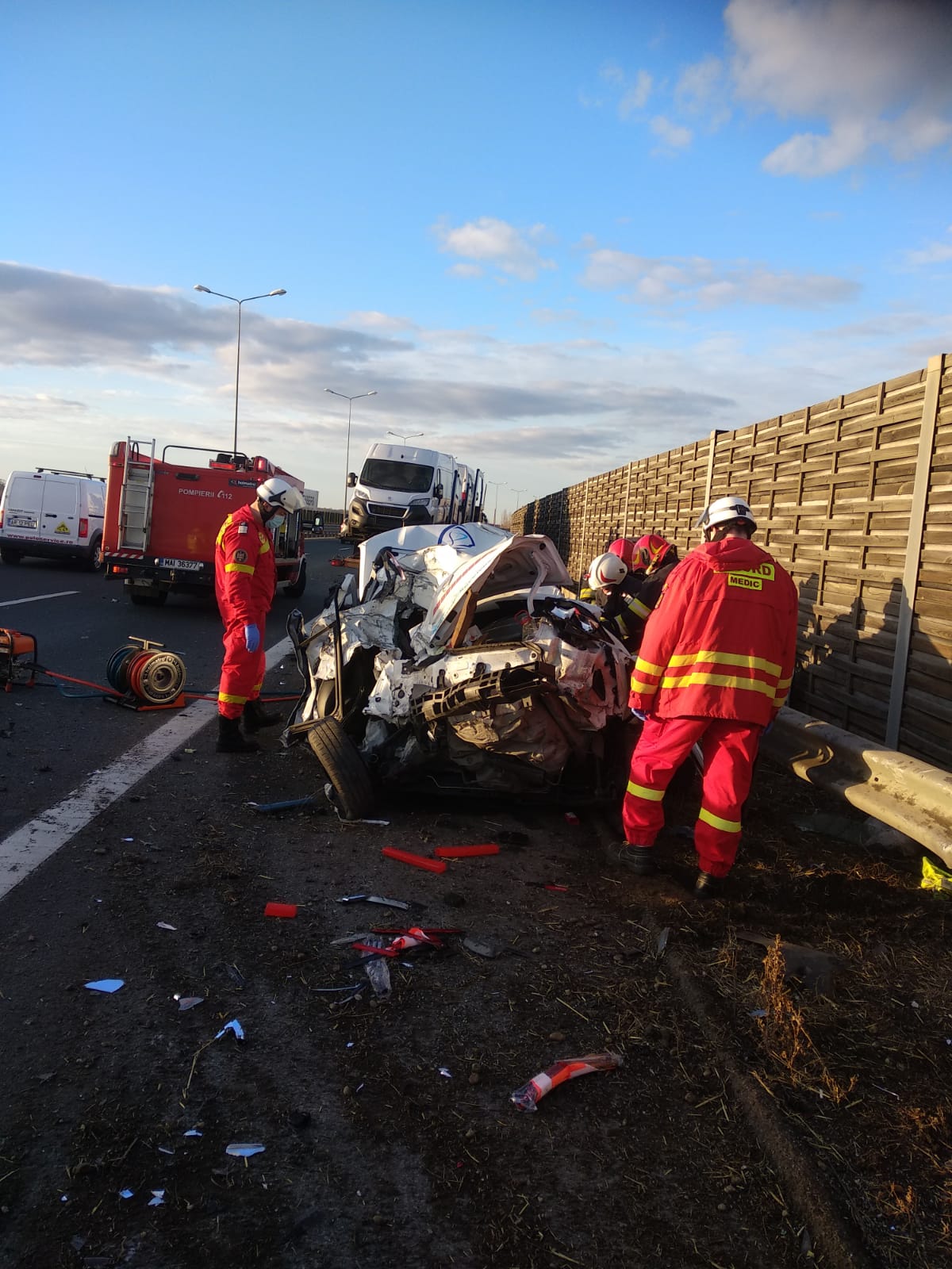 Reprezentanții Inspectoratului pentru Situații de Urgență Arad au transmis, în jurul orei 17, că pe A1, sensul de mers Arad-Nădlac, între coborârile spre Zădăreni și Aeroportul Arad, s-a produs un eveniment rutier grav, în urma căruia un bărbat a rămas încarcerat. La fața locului s-au deplasat trei echipaje ale ISU Arad: unul de descarcerare, un echipaj SMURD și unul de stingere dotat cu modul de descarcerare.