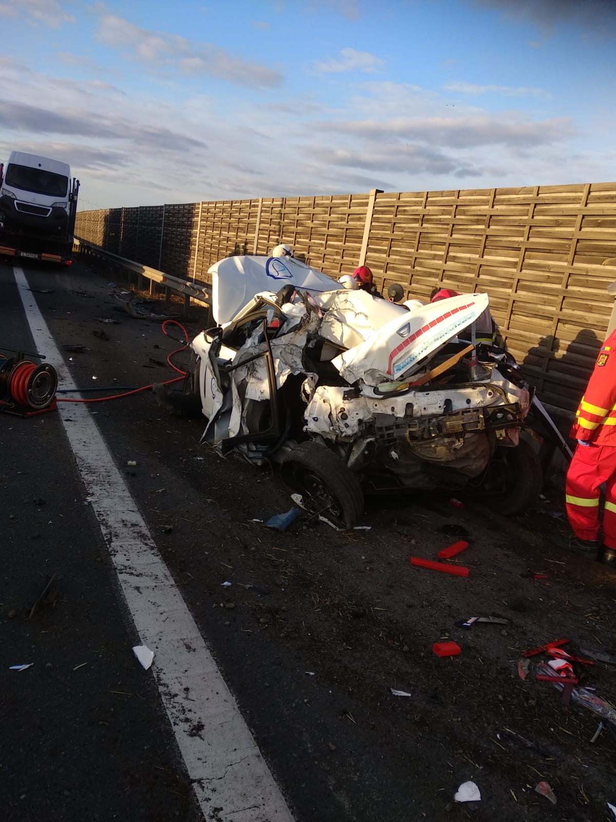 Conform unor informații neoficiale, ar fi vorba despre un autoturism al firmei care se ocupă de paza autostrăzii. Aceasta ar fi fost oprită pe banda de urgență, iar un autocamion ar fi intrat în coliziune cu mașina.