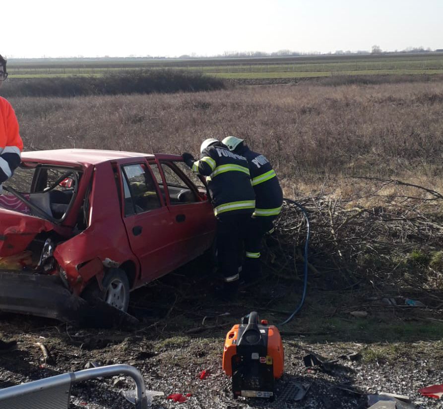UPDATE. „În urma accidentului rutier a rezultat o victimă, conducătoarea autoturismului, o femeie în vârstă de 50 ani. Pompierii militari arădeni au acționat pentru deblocarea victimei din autoturism, aceasta fiind conștientă și cooperantă.Echipajul medical SAJ îi acordă acesteia îngrijiri medicale la locul evenimentului.Șoferul autotrenului nu a necesitat îngrijiri medicale”, au transmis reprezentanții ISU Arad.