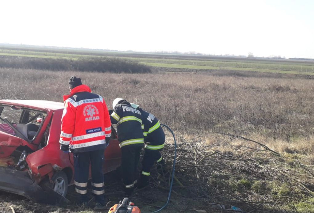 „În ziua de 7 februarie a.c., în jurul orei 15.04, polițiștii Serviciului Rutier au fost sesizați despre un eveniment rutier, în afara localității Arad. Din primele cercetări, a reieșit că o femeie de 50 de ani, din Zimandu nou, în timp ce conducea un autoturism pe D.N 79, a pierdut controlul asupra volanului, acroșând un autotren. În urma impactului a rezultat rănirea ușoară a femeii (la prima vedere), aceasta fiind transportată la spital pentru evaluarea stării sale și acordarea de îngrijiri medicale.