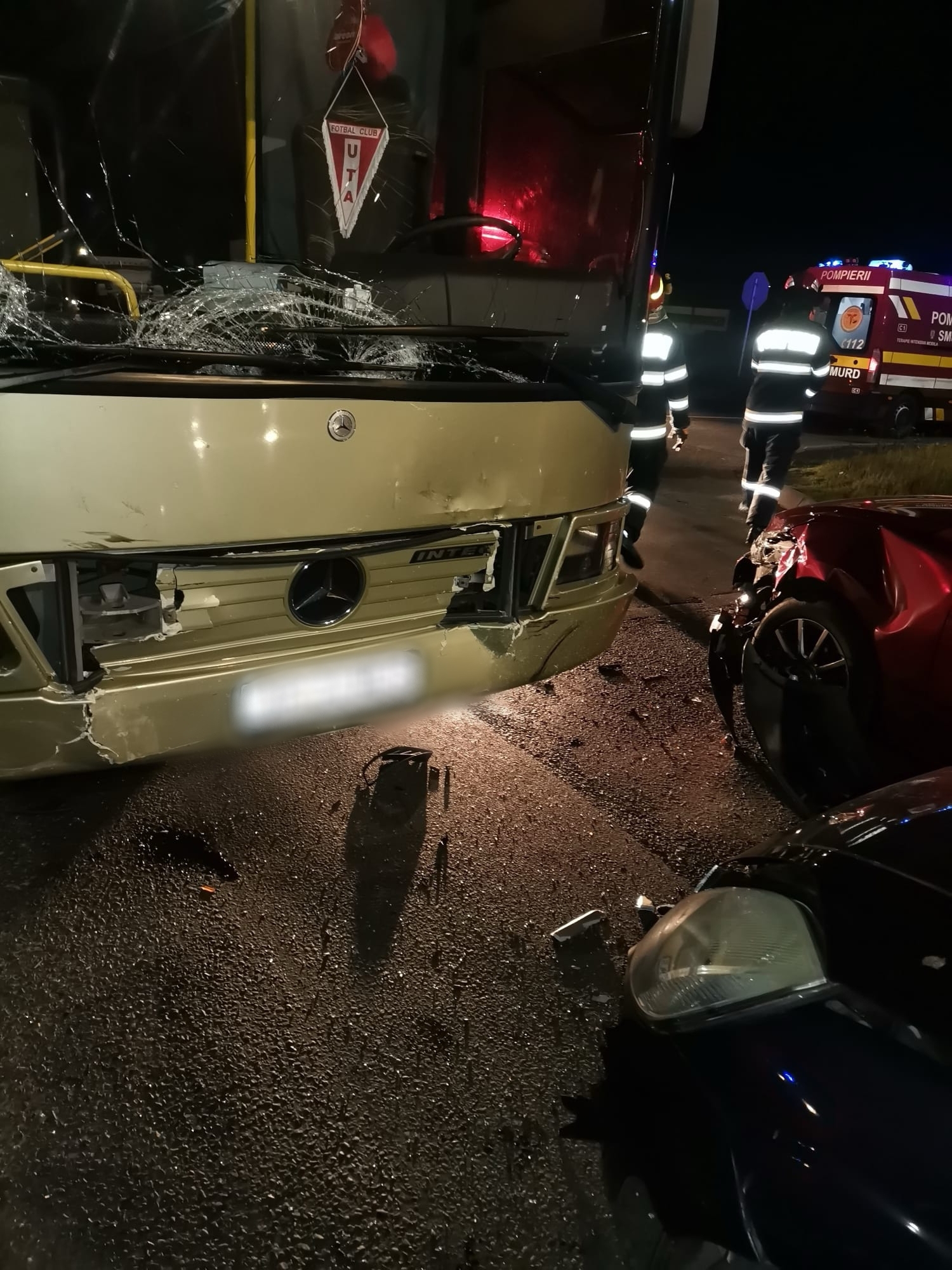 Din fericire, atât în autobuz, cât și în autoturisme nu se aflau decât conducătorii auto. ISU Arad a transmis că pentru misiune au intervenit pompierii militari ai Detașamentului Arad cu: o autospecială pentru descarcerare, o autospecială de stingere și un echipaj SMURD TIM.