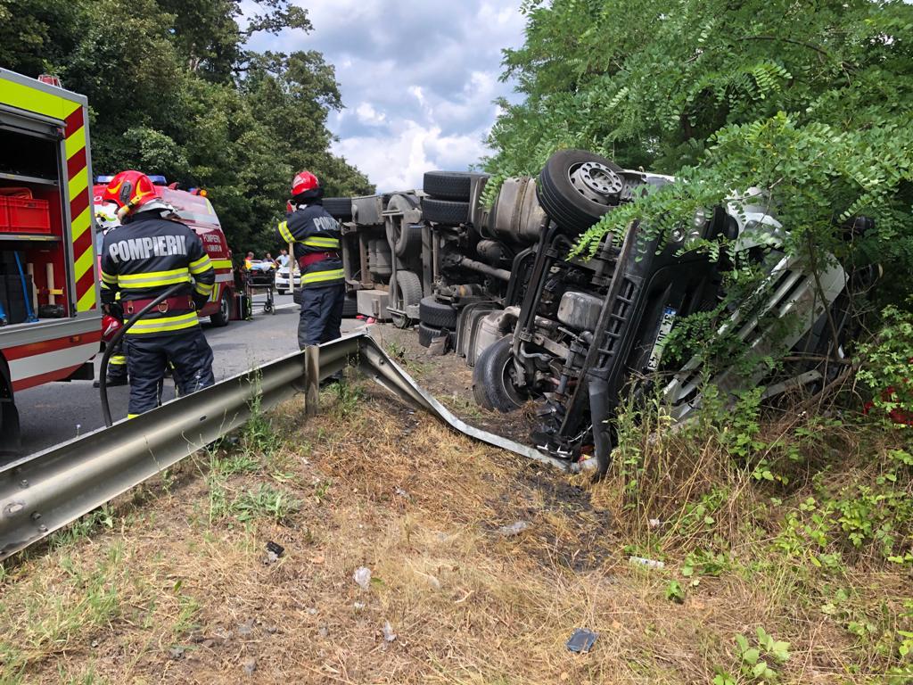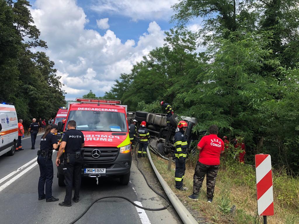Conform apelului la 112, autocamionul s-ar fi răsturnat în șanțul de pe marginea DN7 Arad-Deva, la intrarea în localitatea Bârzava, iar șoferul a rămas încarcerat. La fața locului s-au deplasat două autospeciale de stingere cu apă și spumă, respectiv descarcerare ale Secției Bârzava a ISU Arad, un echipaj SMURD și unul al Serviciului de Ambulanță Județean Arad.