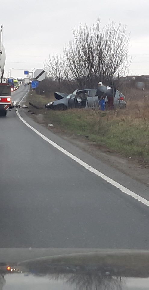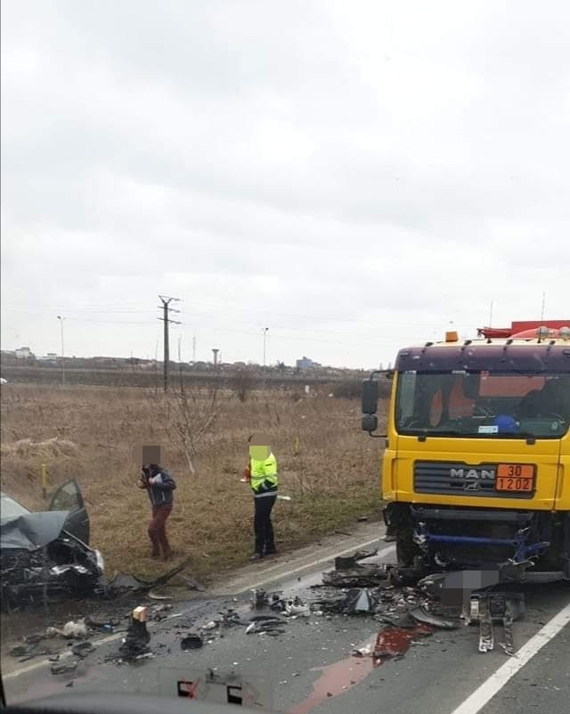 ARAD. Un accident rutier în care au fost implicate un camion (gol) și un autoturism a avut loc joi, înainte de prânz, pe centura municipiului Arad, lângă pasajul CET.