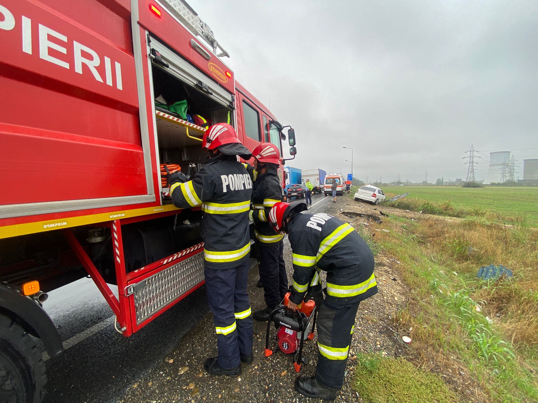 ARAD. Reprezentanții Inspectoratului pentru Situații de Urgență (ISU) Arad anunță că există posibilitatea ca o persoană să fi rămas încarcerată în urma accidentului rutier.„Intervine Detașamentul de Pompieri Arad cu o autospecială cu modul pentru descarcerare, încadrată cu 4 subofițeri și 2 soldați. În sprijin intervin și două ambulanțe SAJ. Intervenția este în dinamică”, anunță cei de la ISU Arad.