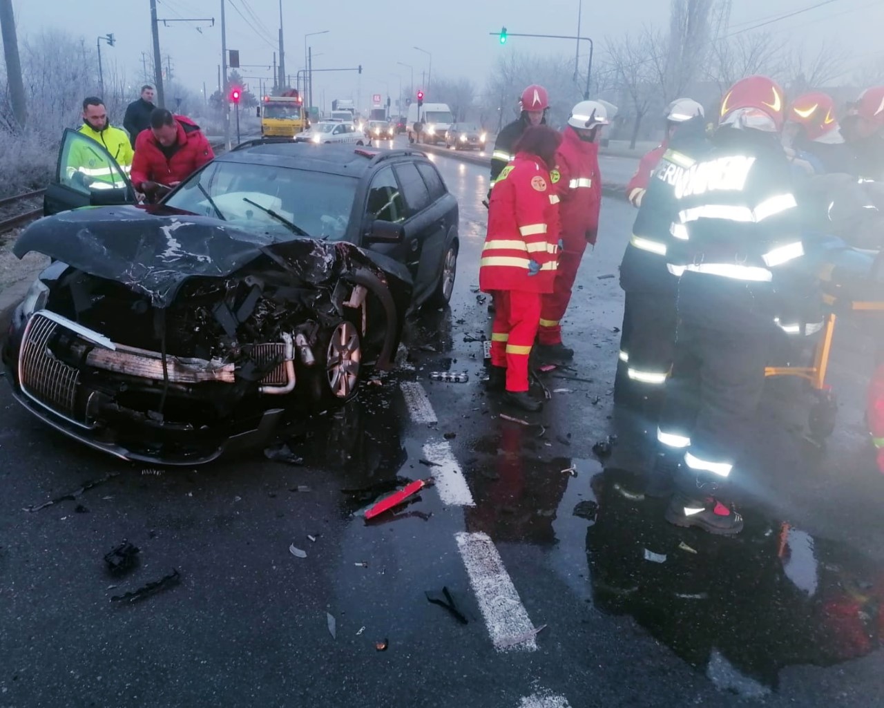 ARAD. Potrivit informațiilor venite dinspre ISU Arad, două autovehicule au fost implicate în evenimentul rutier, iar o persoană a rămas încarcerată în urma impactului. Este vorba despre un bărbat de aproximativ 35 de ani. Acesta a fost extras din autoturism de echipajul de descarcerare și predat paramedicilor SMURD. Victima este conștientă și cooperantă.