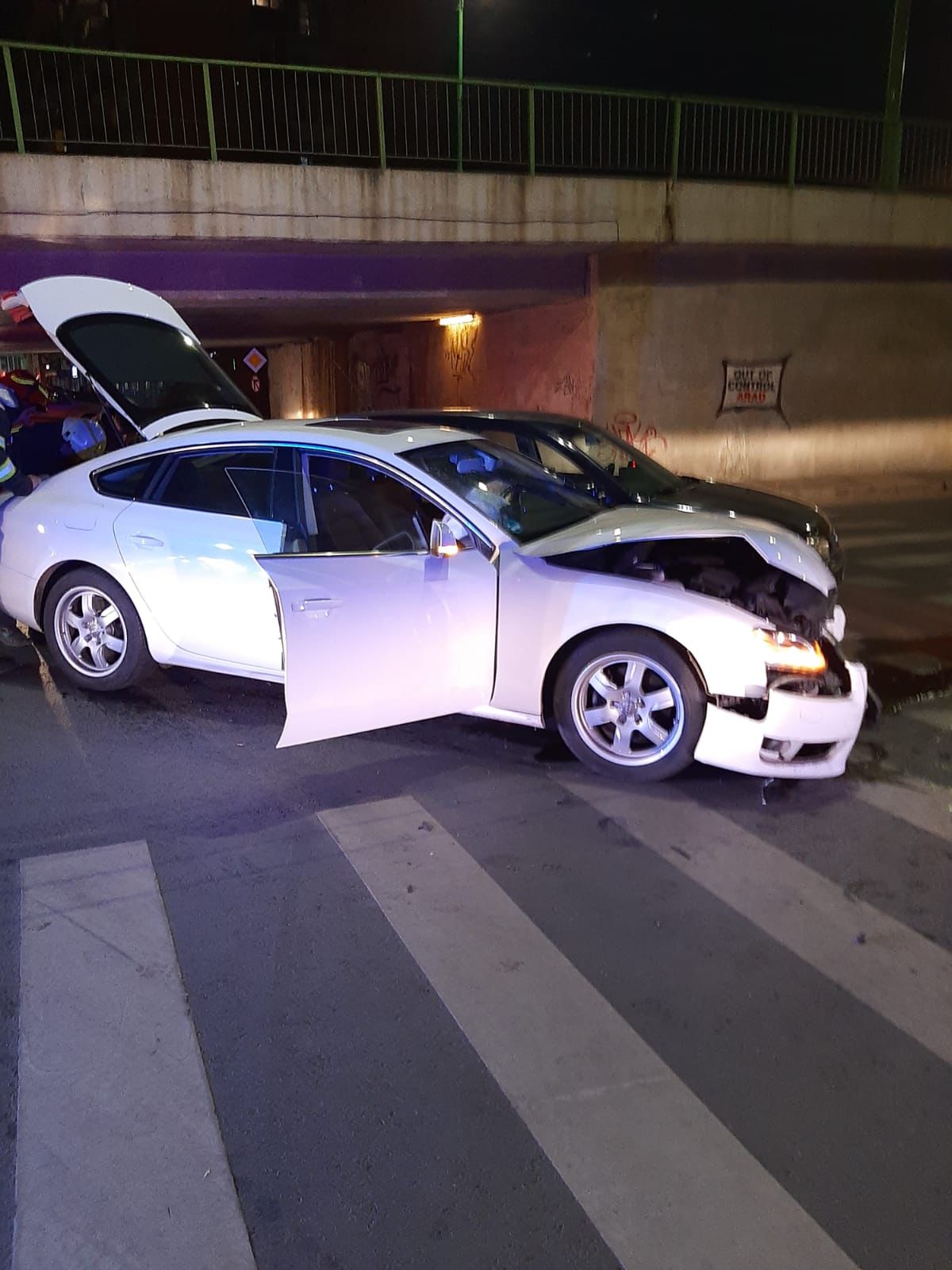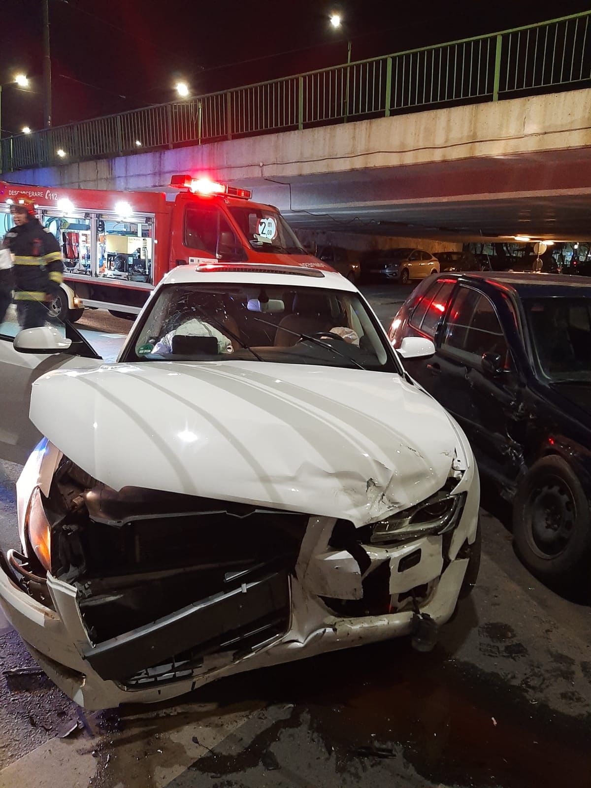 Echipajul de descarcerare ușoară din cadrul Detașamentului de Pompieri Arad s-a deplasat, în această seară, la un accident care a avut loc în municipiu, sub podul de la Grădiște. Deși în urma apelului la 112, se părea că o persoană se află încarcerată în mașină, pompierii au constatat, la fața locului, că nu mai este necesar să intervină. Victima a reușit să iasă singură din mașină. Acesta a primit îngrijiri medicale la fața locului, de la echipajul Seviciului de Ambulanță Județean, care a răspuns apelului. Bărbatul, pasager în autoturismul implicat în accident, a refuzat transportul la Unitatea de Primire Urgențe pentru mai multe investigații.