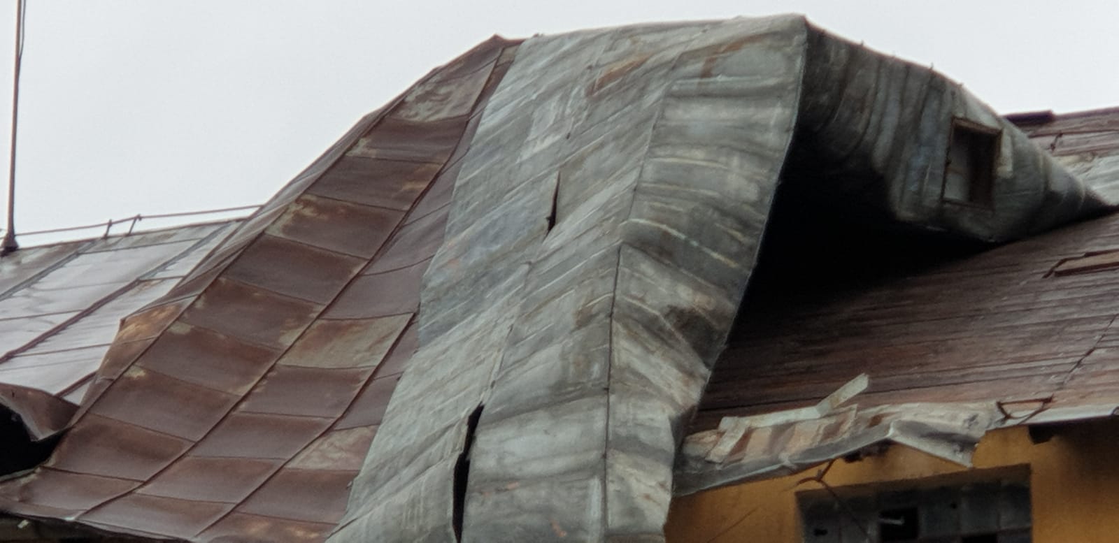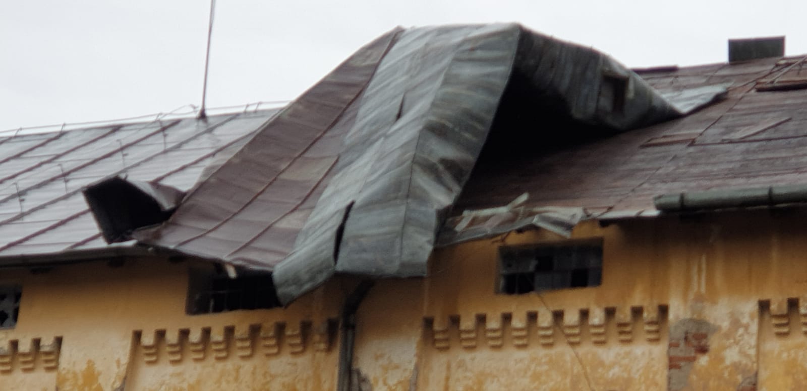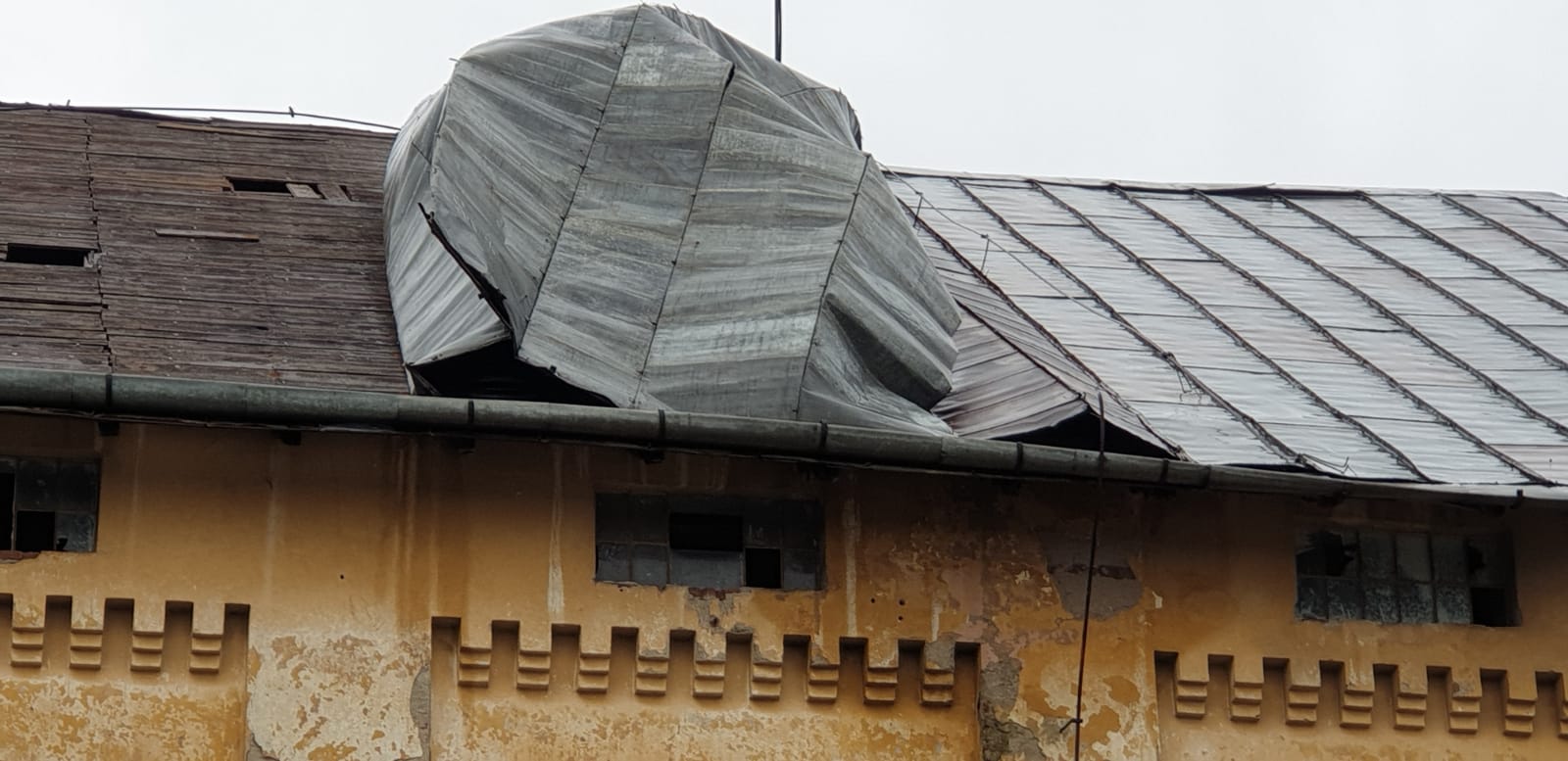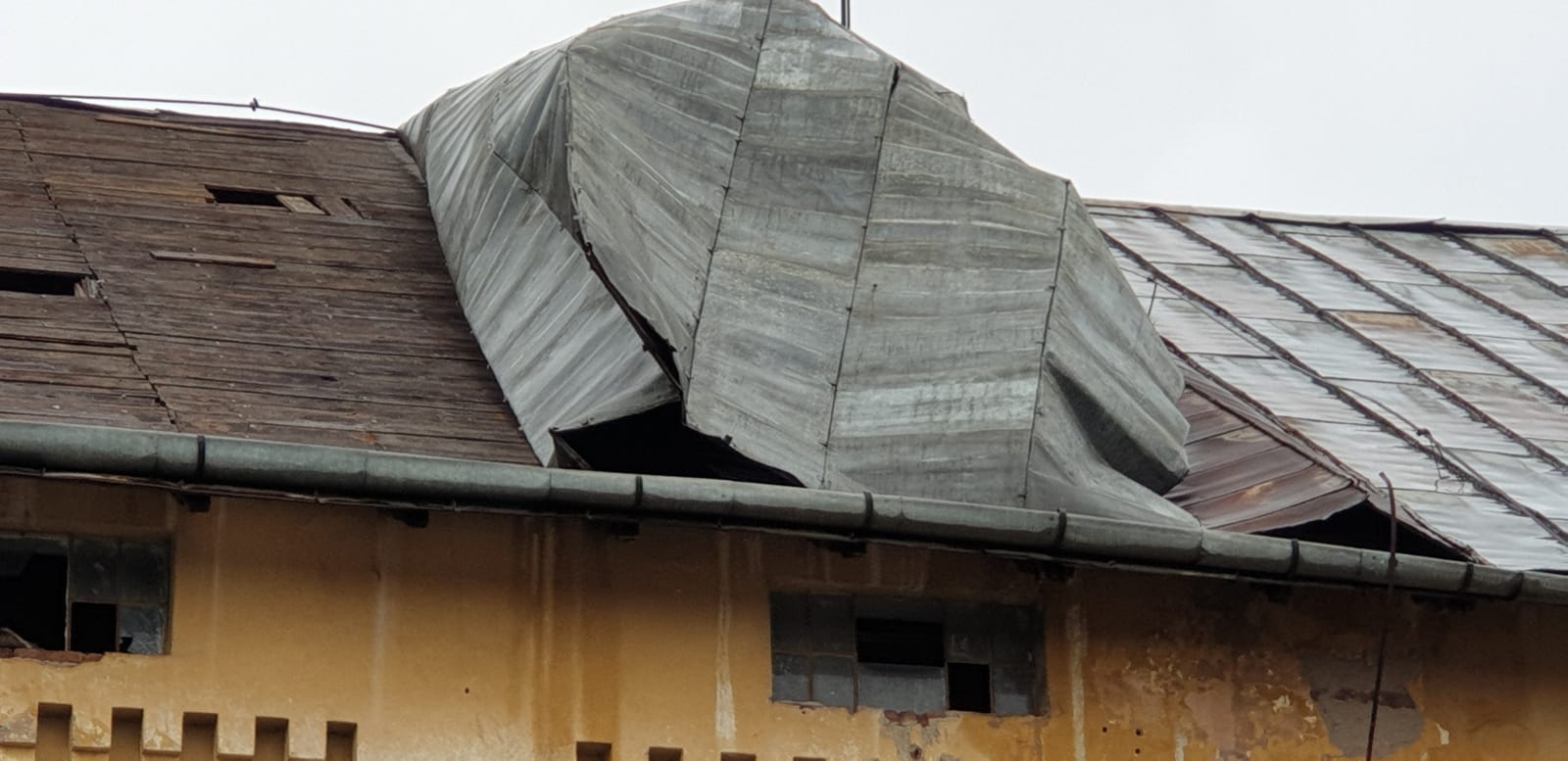 PECICA. Rafalele au dislocat bucăți întregi din acoperiș și au rulat tabla pe zeci de metri pătrați de parca ar fi fost o foiță subțire de hârtie. Localnicii care locuiesc în zonă sunt speriați, în timp ce autoritățile locale sunt legate de mâini. Clădirea este proprietate privată, așa că numai proprietarul ei poate lua măsuri. Vântul, care suflă cu putere de mai multe zile, a făcut sul acoperișul morii din orașul Pecica. Bucăți de tablă, grea de zeci de kilograme, stau să cadă în orice moment, spre disperarea trecătorilor. Polițiștii locali au împrejmuit zona, însă perisolul este mare în continuare. Rafalele pot lua pe sus bucățile grele din tablă, iar soluția este una singură, înlăturarea, în întregime, a acoperișului.