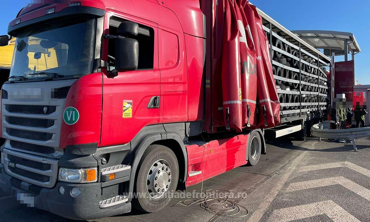 NĂDLAC. „Polițiștii de frontieră din cadrul Punctului de Trecere a Frontierei Nădlac II, au depistat, ascunși într-un automarfar condus de un cetățean roman ce transporta anvelope pe ruta România-Portugalia, zece cetățeni străini. Persoanele au fost preluate și transportate la sediul sectorului pentru cercetări unde, în urma verificărilor, poliţiştii de frontieră au stabilit că sunt cetăţeni din Afganistan, solicitanți de azil în țara noastră. În acest caz, poliţiştii de frontieră efectuează cercetări în vederea stabilirii întregii activități infracționale, urmând ca la finalizare să fie dispuse măsurile legale care se impun”, au declarat reprezentanții Serviciului Teritorial al Poliției de Frontieră Arad.