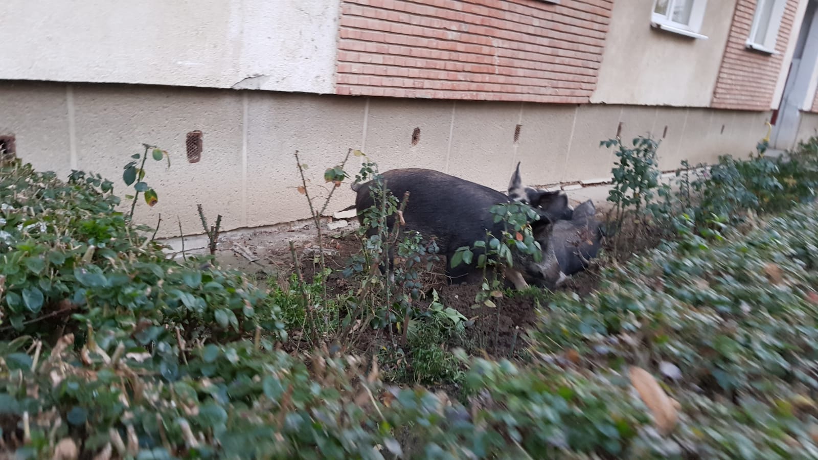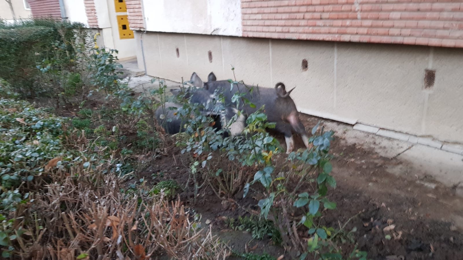 Vineri dimineaţă, o mică turnă de porci colinda cartierul şi călca în picioare rondourile îngrijite de locuitori. Pe strada Pionerilor au distrus spaţiile verzi.