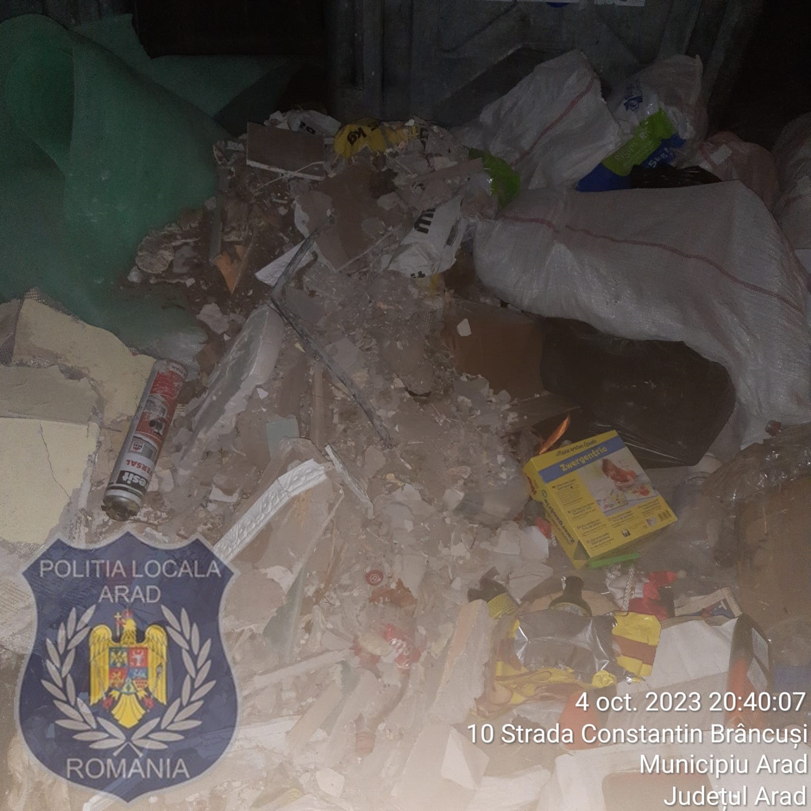 “Ajuns la fața locului în doar câteva minute, echipajul a aplicat o amendă în valoare de 600 lei, pentru nerespectarea prevederilor HCLM nr. 297/2015 privind aprobarea „Regulamentului de organizare și funcționare a serviciilor publice de salubrizare din municipiul Arad”. Deșeurile proveneau din costrucții și fuseseră transportate cu ajutorul unei roabe și a unui tomberon, fiind aruncate pe jos, lângă platforma destinată depozitării resturilor menajere, în timp ce membrii familiei contravenientului supravegheau atent acțiunea. Menționăm că potrivit art. 119, lit. j din actului normativ mai sus amintit, cetățenii au obligația menținerii în stare de curățenie a spațiilor în care se face colectarea, precum și a recipientelor în care se depozitează deșeurile municipale”, a transmis Poliția Locală.