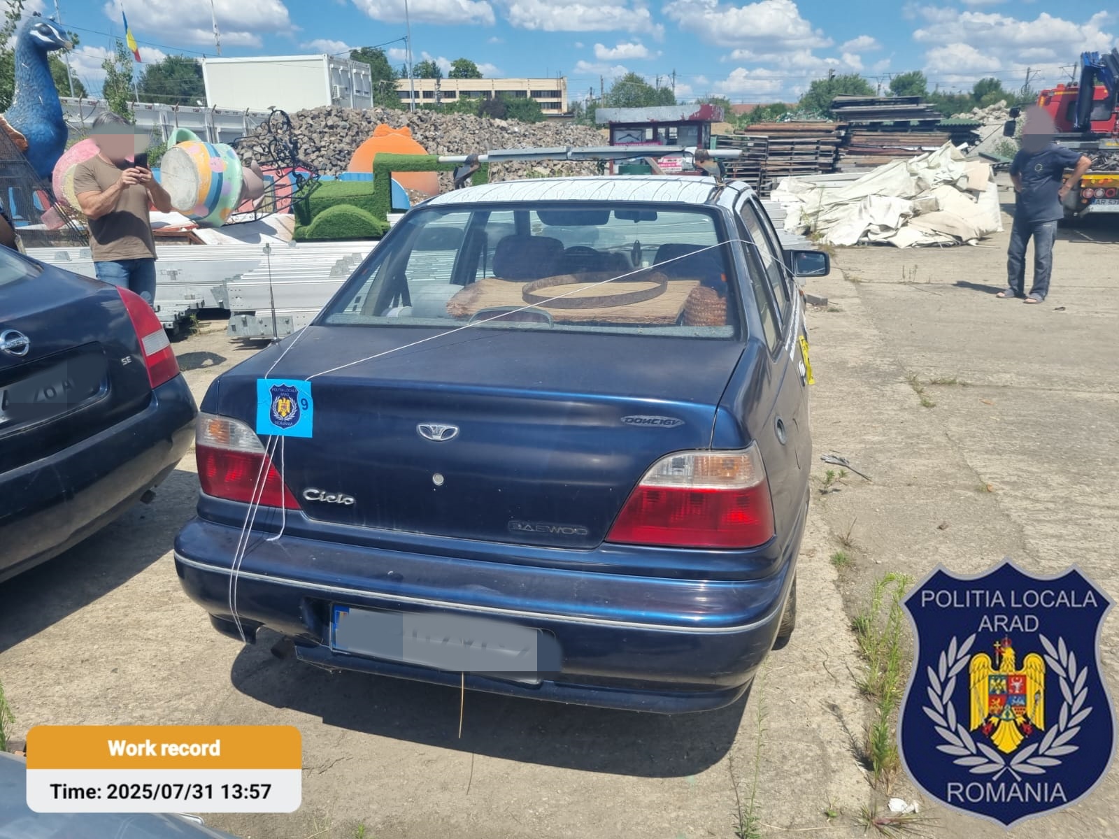 Un vehicul abandonat pe Aleea Călimănești, a fost ridicat de către S.C. RECONS S.A. în data de 31 iulie 2025, la solicitarea Direcției Generale Poliția Locală Arad, cu sprijinul Direcției Comunicare din cadrul Primăriei Municipiului Arad, în urma neconformării somației aplicate pe parbrizul mașinii de către agentul constatator, în vederea eliberării domeniului public, în termen de 10 zile.