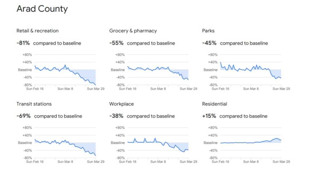 Unde mai merg arădenii? Cum s-a schimbat mobilitatea pe perioada stării de urgență și a restricțiilor de circulație? Google Mobility analizează situația din fiecare județ, dar și situația per ansamblu pe glob. Raportările făcute de Google își porpun să vină cu o perspectivă analitică a schimbărilor cauzate de politicile aplicate cu scopul de a combate COVID-19. Analizele sunt făcute având în considerare sccopul deplasărilor cetățenilor, de la cele pentru recreere sau retail, la cele medicale, către și dintre locurile de muncă sau reședințe. Ce arată de fapt aceste analize? Graficele Google Mobility sunt indicatorul schimbărilor comportamentale ale comunităților în această perioadă.
