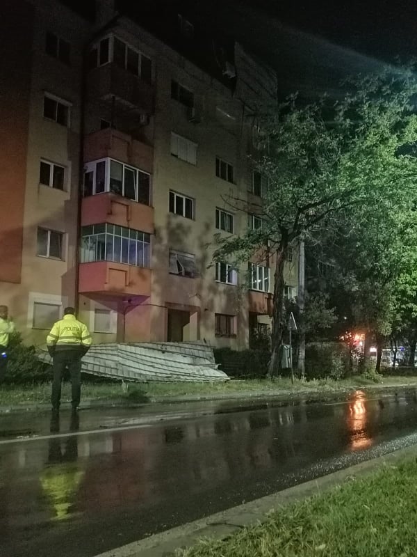 „În acest moment intervenim la Spitalul Judeţean din Arad, unde o parte a anvelopării spitalului s-a prăbuşit. De asemenea, mai intervenim pe trei străzi din municipiu pentru eliberarea lor de arborii căzuţi.”