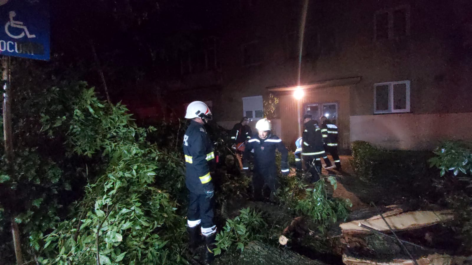„În acest moment intervenim la Spitalul Judeţean din Arad, unde o parte a anvelopării spitalului s-a prăbuşit. De asemenea, mai intervenim pe trei străzi din municipiu pentru eliberarea lor de arborii căzuţi.”