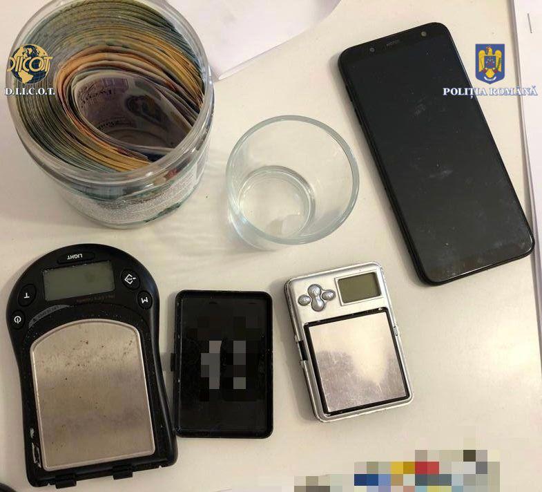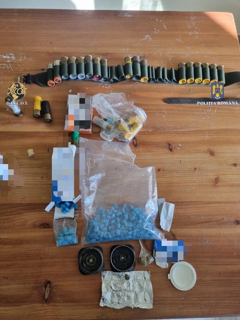 De asemenea, bărbatul, cu sprijinul a doi minori, ar fi comercializat, în mod repetat, diferite cantități de comprimate Ecstasy, pentru sume cuprinse între 500 și 4.000 de lei. La data de 12 iulie au fost puse în aplicare 9 mandate de percheziție domiciliară în județul Arad, fiind descoperite și ridicate 760 de comprimate Ecstasy, cantități de droguri de risc și mare risc (canabis și 3-CMC), 3 cântare electronice de mare precizie și un grinder, o pașcă de vânătoare calibru 4,5 mm, 28 de cartușe calibru 12 mm, 3 telefoane mobile, 19.978 de lei, 2.200 de euro, 80 de lire sterline și 100 de franci elvețieni.