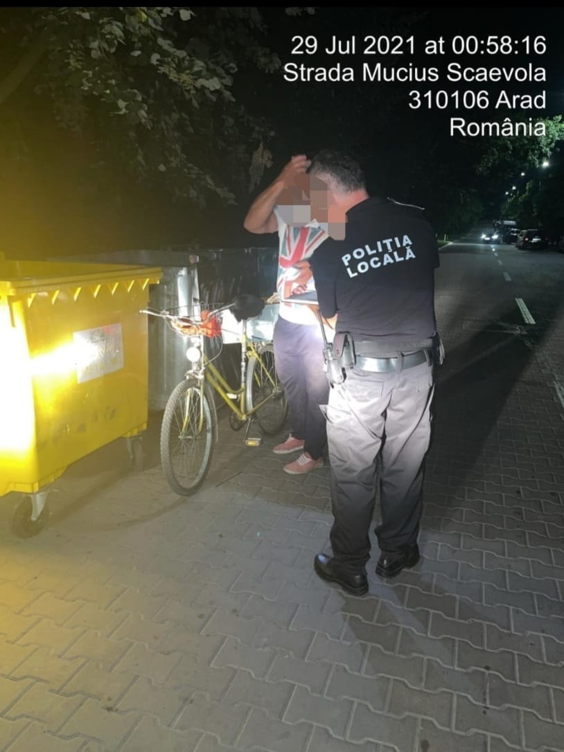 Arad. Poliția locală informează că în noaptea de joi, urmare a activității de monitorizare video a unei platforme gospodărești din zona centrală a orașului, operatorul Serviciului Dispecerat și Monitorizare din cadrul Direcției Generale Poliția Locală a surprins un individ care scotea deșeuri din pubele și le arunca pe domeniul public.