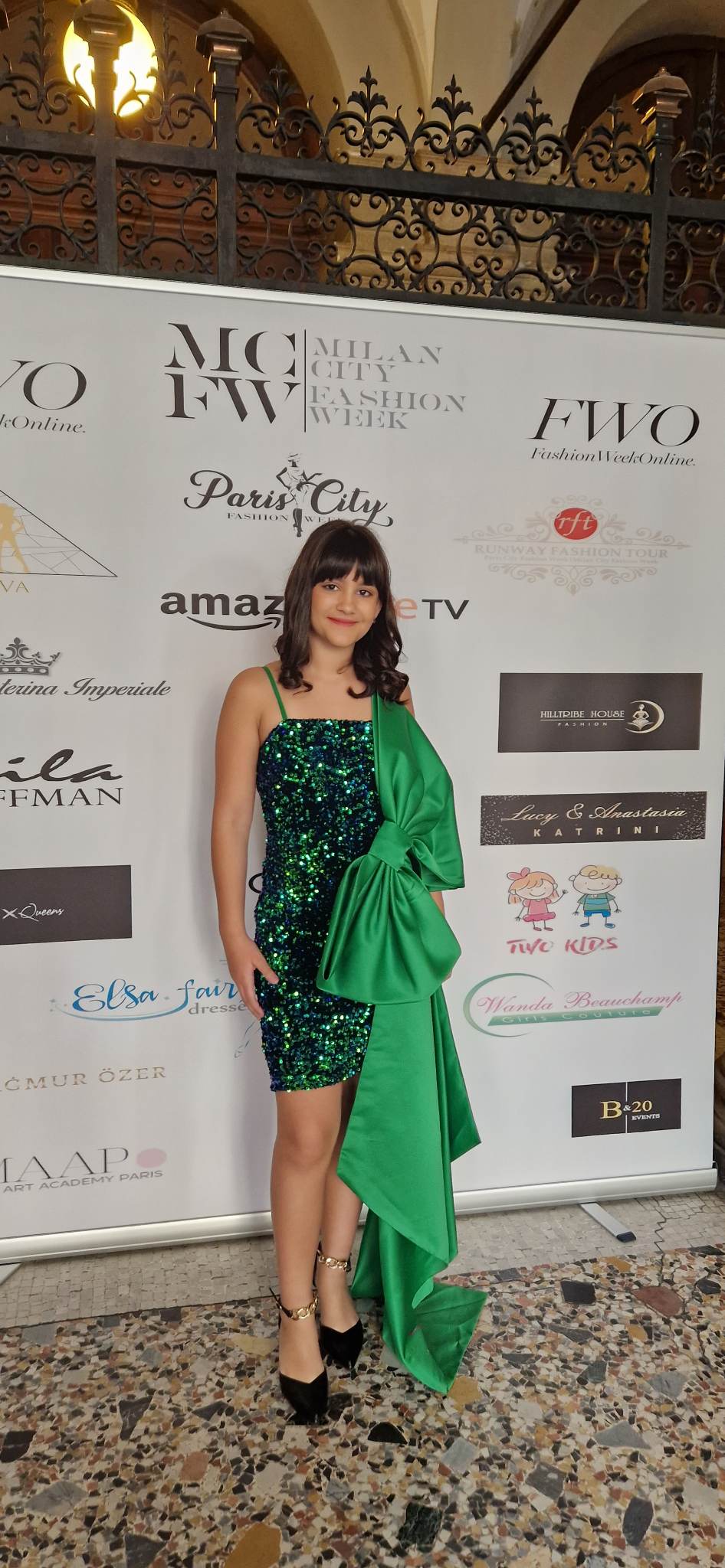 ARAD. După ce anul trecut a fost desemnată Princess World Junior 2022 şi a câştigat premiul special Photomodel of the World 2022, la concursul internaţional de frumuseţe destinat copiilor, grupa de vârstă 11-13, arădeanca Maria Chelmăgan a defilat în Milano, oraşul italian al modei. Zilele trecute, Maria – cursantă a agenţiei Lawinne Models – a participat la Milano City Fashion Week, un eveniment organizat pentru copii. Ea a prezentat creaţii ale designerilor Maria Caterina Imperiale și Zaggaro. De asemenea, în cadrul aceluiaşi eveniment, Maria Chelmăgan a avut şedinte foto în punctele principale ale orașului Milano.