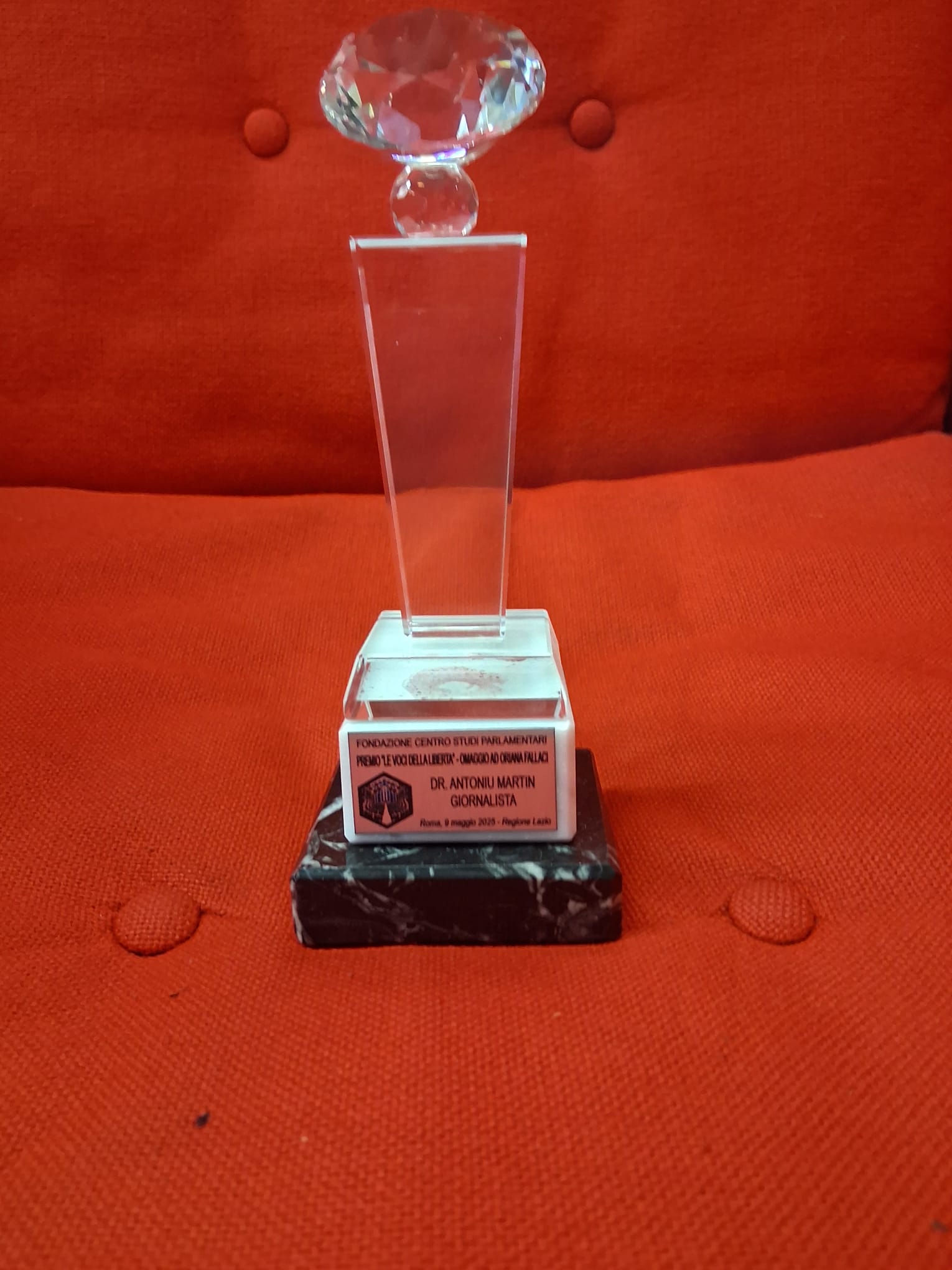 Cu ocazia Zilei Europei, pe 9 mai, la sediul Regiunii Lazio, a avut loc o altă festivitate de premiere unde mi s-a conferit un important premiu „Le Voci della Liberta”, Omaggio ad Oriana Fallaci, de către Centrul de Studii Parlamentare din Roma. Din nou am trăit o mare emoție având în vedere semnificațiile acestei distincții. Oriana Fallaci reprezintă un simbol mondial al libertății de expresie și perseverență jurnalistică. Prin premierea din 9 mai pot spune că m-am înscris într-o selectă galerie de jurnaliști și personalități internaționale care promovează și apară libera exprimare. Ca și consilier pe domeniul geopoliticii în cadrul Consiliului Internațional pentru Diplomație și Justiție, sub egida ONU, înțeleg ce înseamnă libertatea și posibilitatea de a te exprima liber peste tot în lume. M-am bucurat că alături de mine au fost premiați și reprezentanți de seamă ai administrației americane, diplomați, ambasadori ONU, jurnaliști de prestigiu, politicieni europeni și italieni etc.