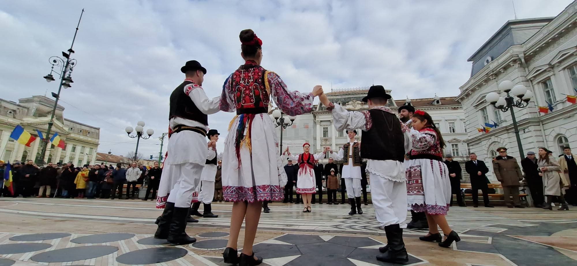 Manifestările organizate cu ocazia Marii Uniri s-au desfășurat pe platoul Palatului Administrativ. Oficialitățile și arădenii prezenți au dansat tradiționala Horă a Unirii, simbol al unității și solidarității românilor. Manifestările au fost organizate de către Instituția Prefectului – Județul Arad și au debutat la ora 10:00, cu prezentarea onorului și salutul drapelului de luptă, urmate, de intonarea Imnului Național al României. Momentul solemn va fi completat de un ceremonial religios, oficiat de reprezentanți ai Arhiepiscopiei Aradului. Au avut loc și alocuțiuni susținute de oficialități, care au evocat importanța Unirii Principatelor Române și rolul acesteia în consolidarea identității naționale.