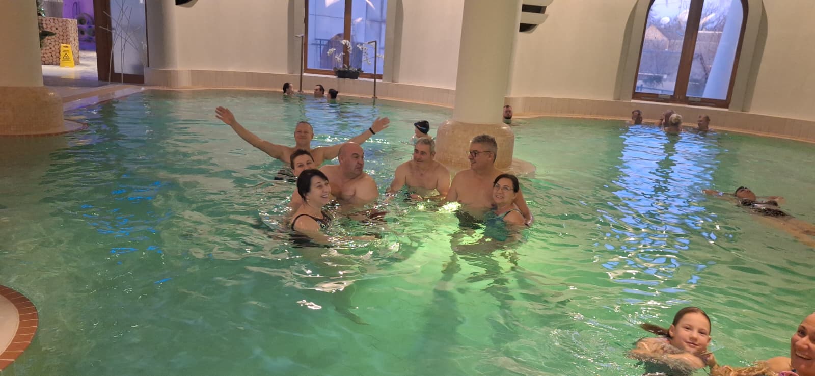 „Venim des aici, pentru relaxare, pentru masaj, pentru fetiţă, că-i place în apă… Aici avem condiții, în Arad din păcate nu avem în perioada asta de iarnă. Aici avem apă termală, saună, masaj, tobogane, mâncare bună” – spune un tânăr părinte aflat cu soţia şi copilul în bazin.