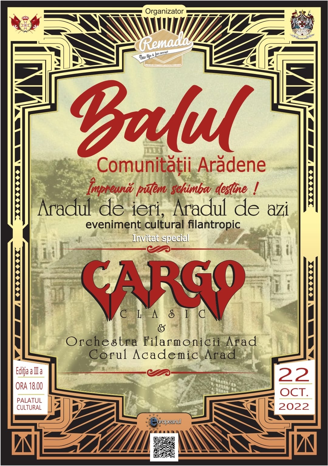 Orchestra simfonică și corul academic al Filarmonicii Arad, sub bagheta dirijorului Marius Hristescu, continuă ideea muzicală lansată la ediția din anul 2021, cu un proiect ce îmbină muzica clasică cu muzica rock sub denumirea sugestivă, Cargo – Clasic. Formația Cargo acompaniată în premieră de orchestra Filarmonicii, corul academic și elevii Colegiului de Arte ,,Sabin Drăgoi” din Arad, va interpreta piese muzicale din repertoriul național și internaţional.