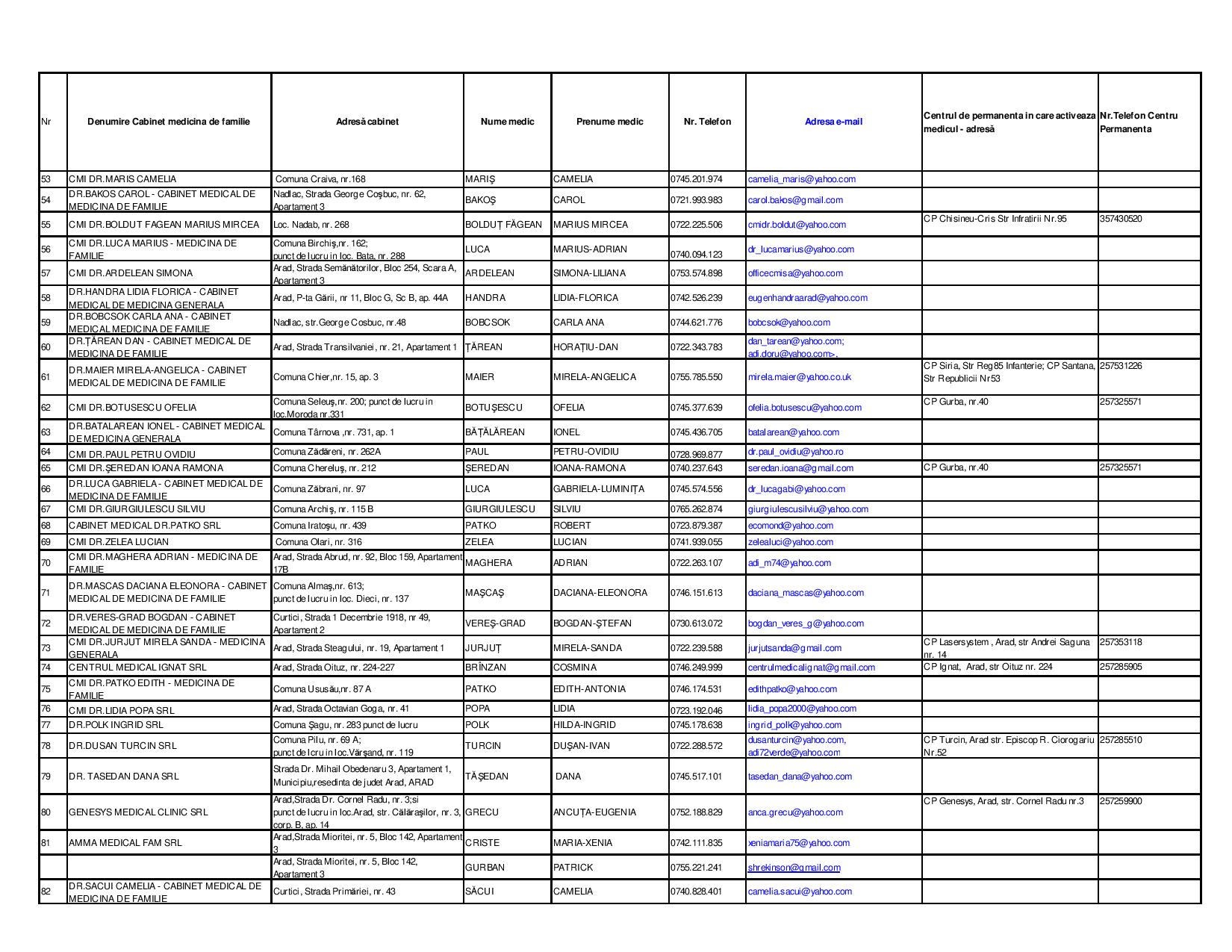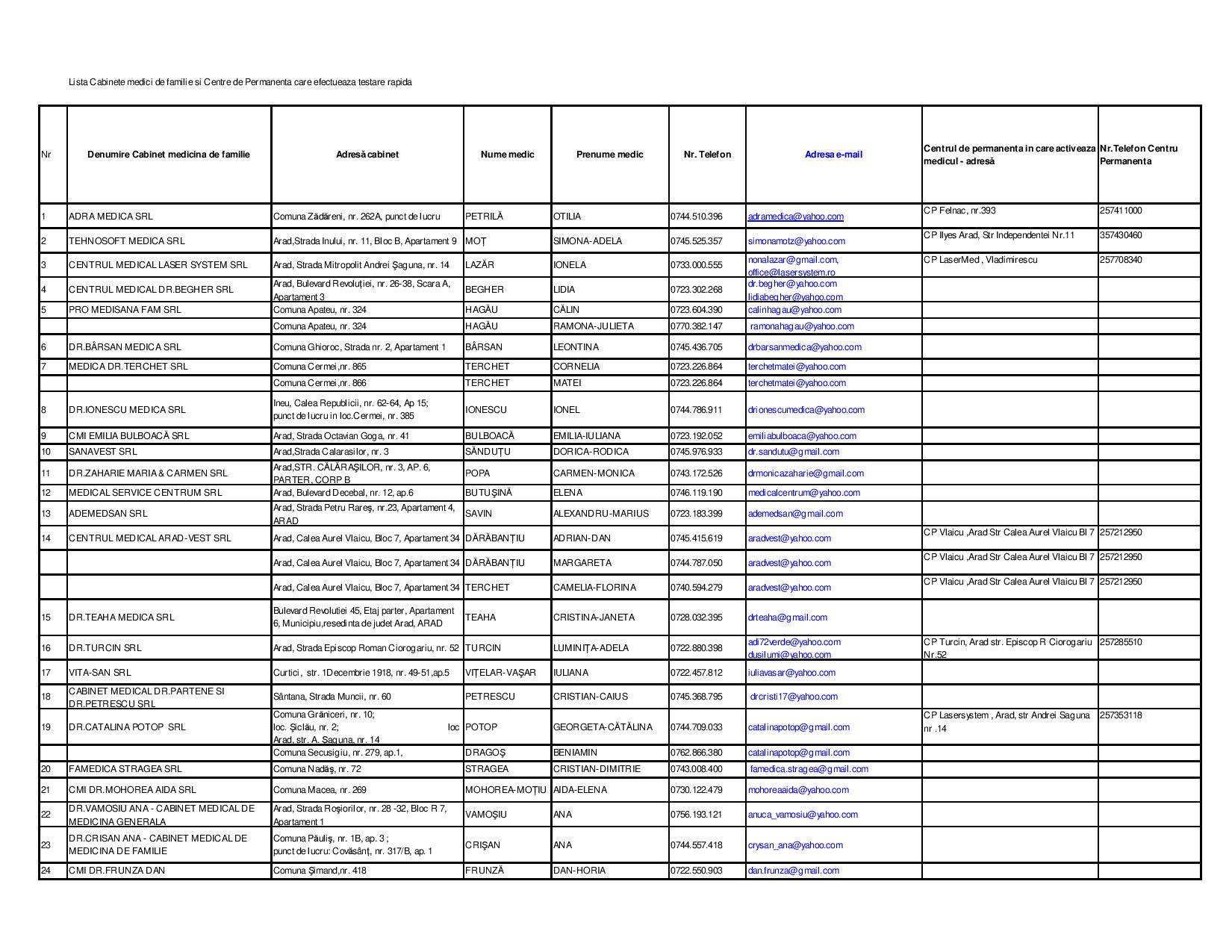 Lista cabinetelor medicale